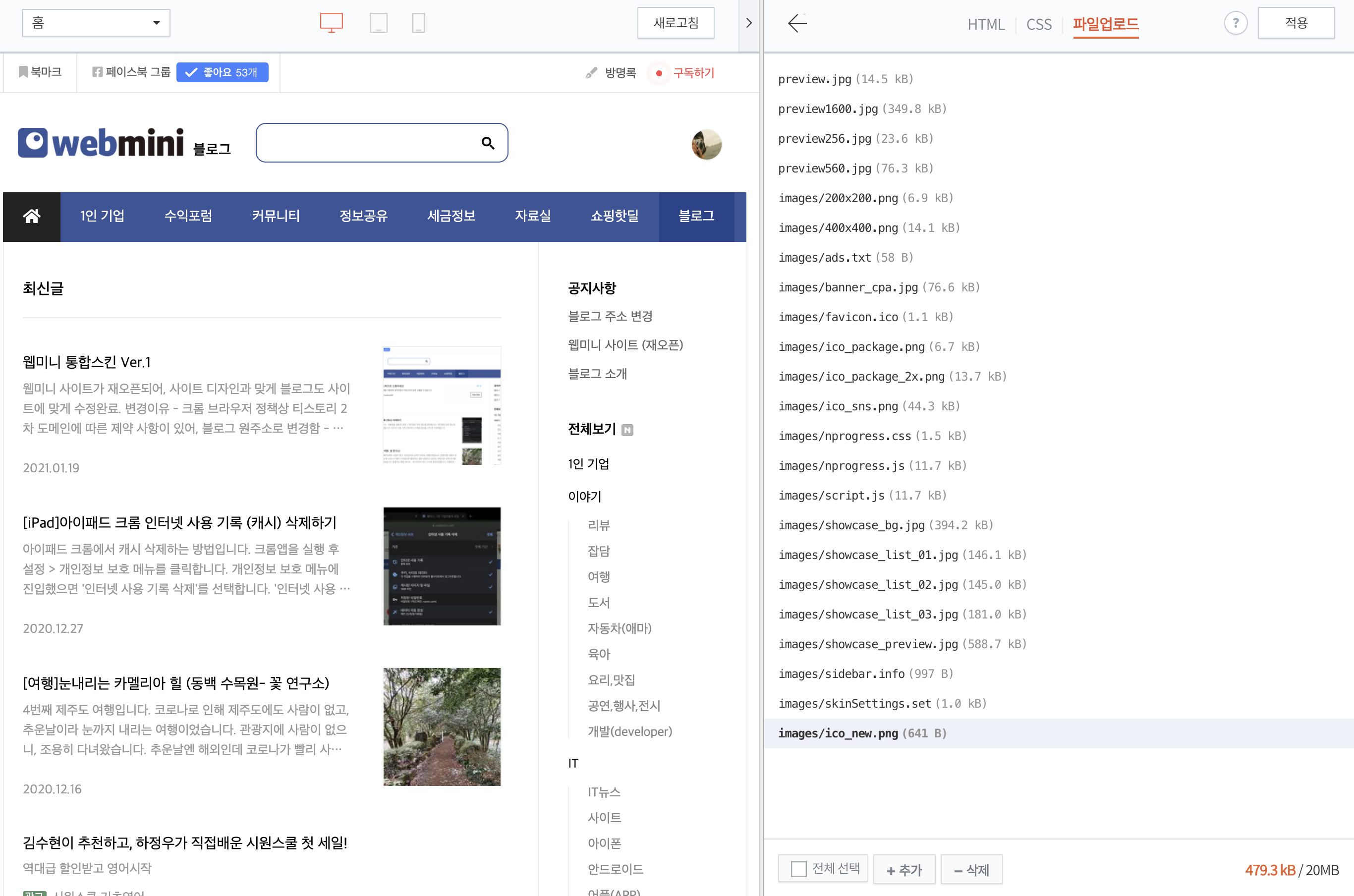 2. 관리자 > 꾸미기 > 스킨편집에서 변경할 이미지를 업로드합니다.