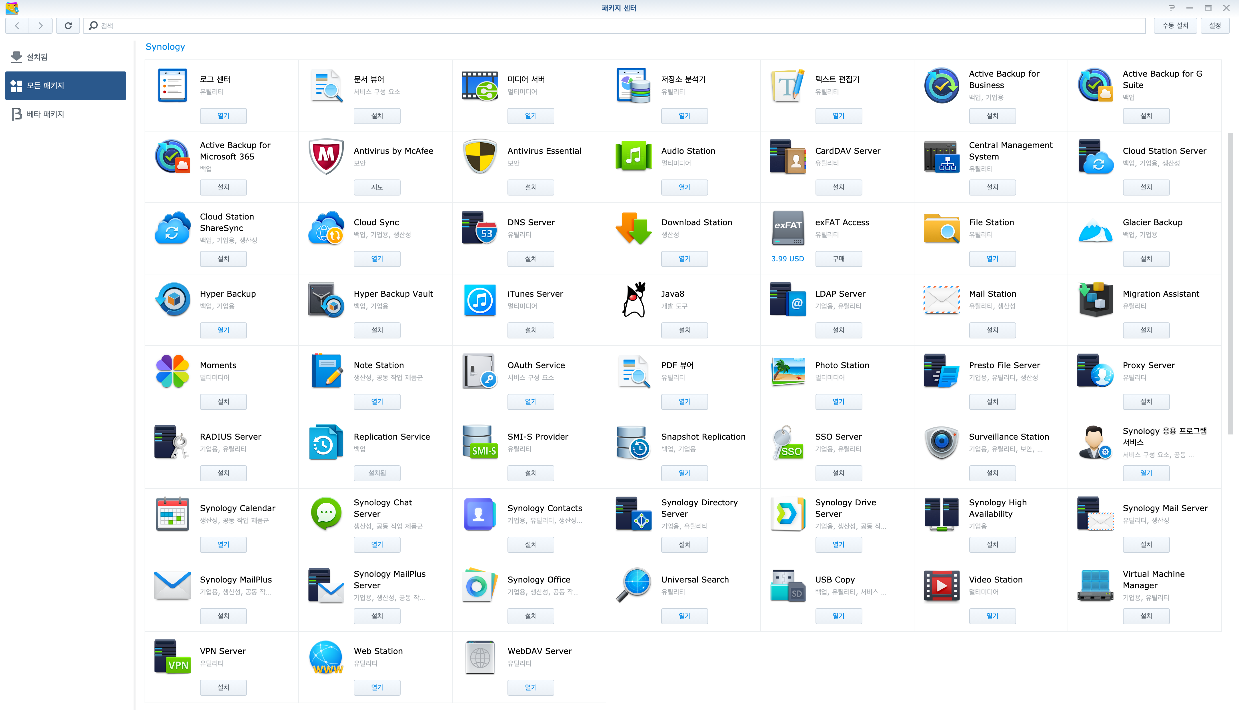 나스 장비 업체가 여러군데 있겠지만, 내가 생각 하는 시놀로지의 큰장점은 제품도 제품이지만, 그안에서 제공해주는 패키지이다.