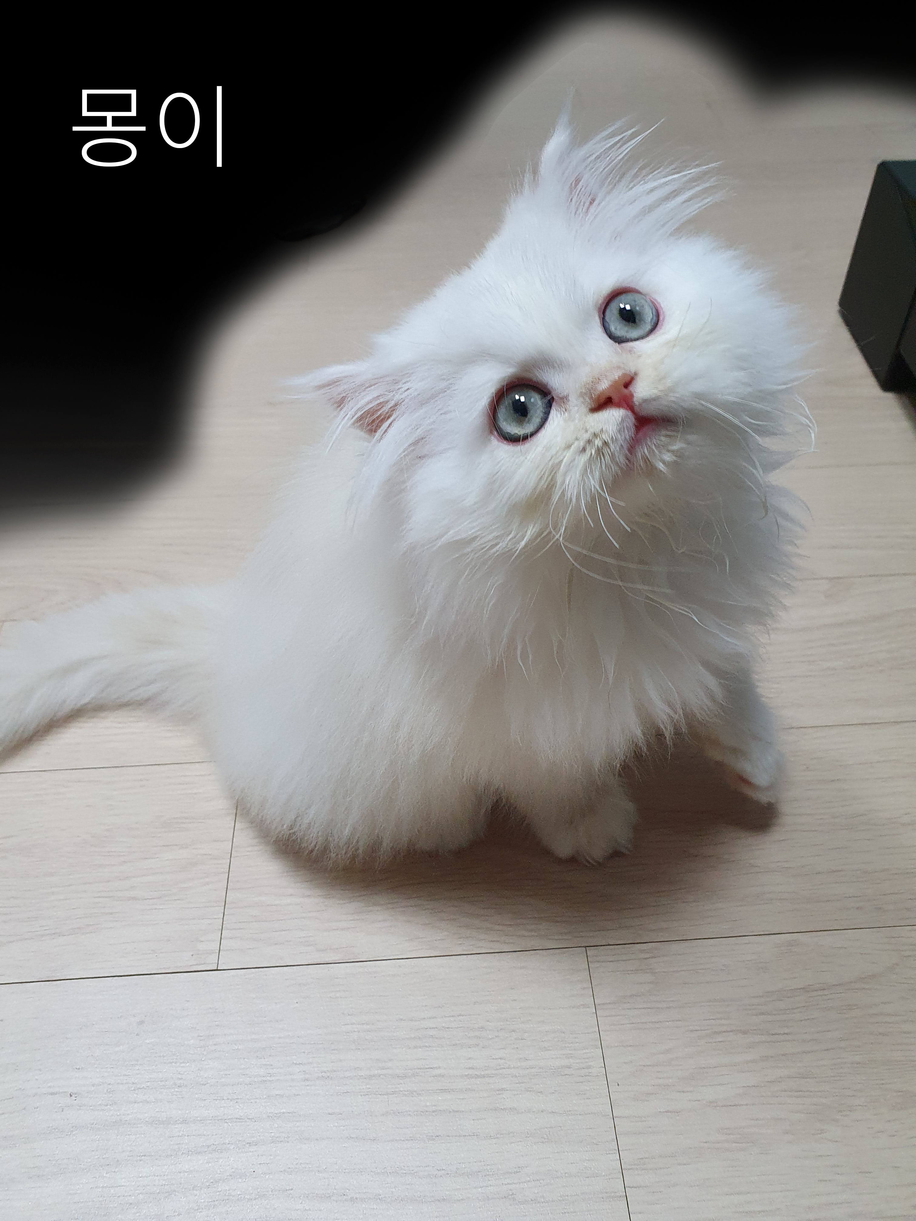 입양한 반려묘는 페르시안 고양이이며, 이름은 '몽이'입니다.
