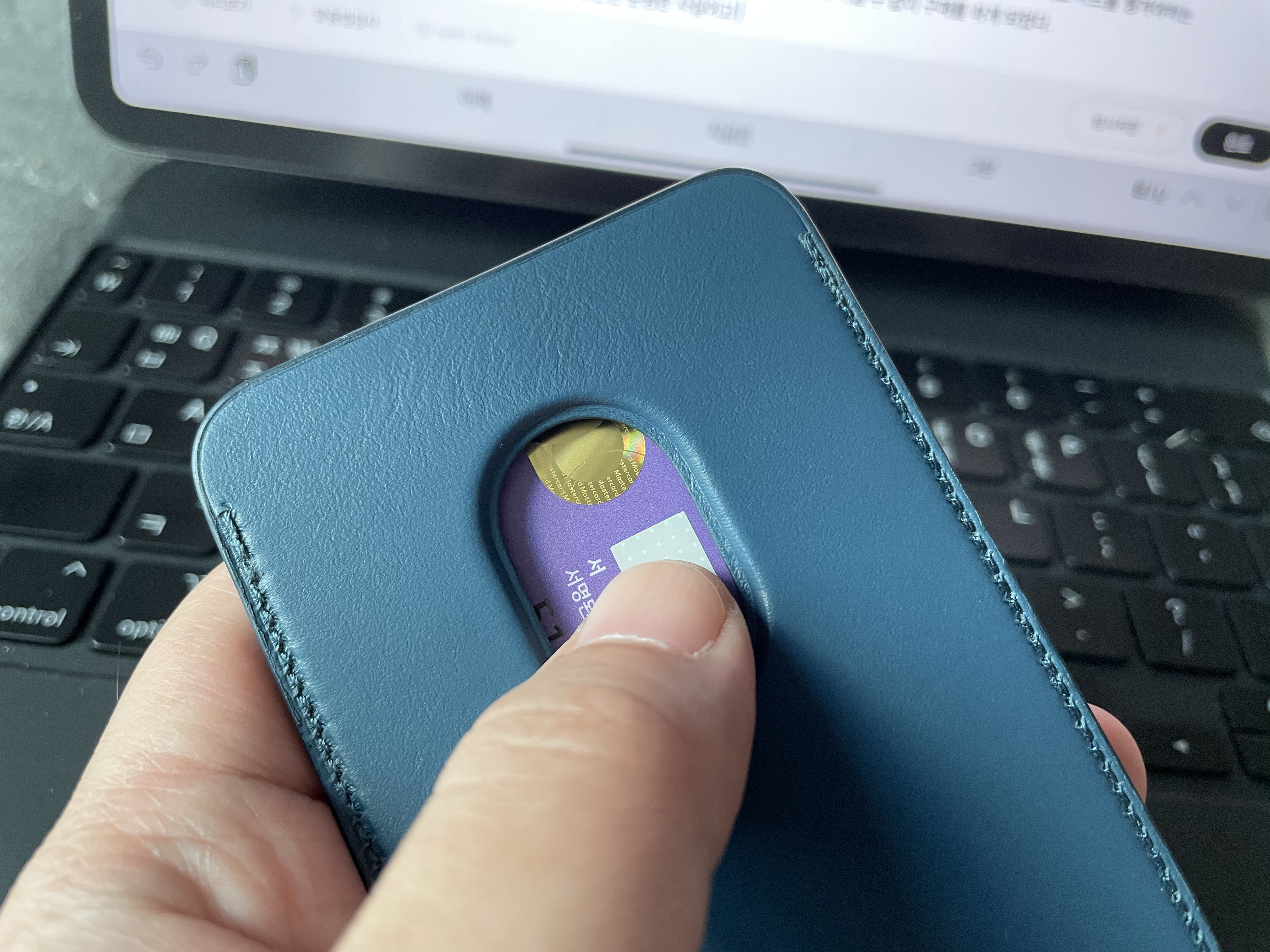 정품 가죽 카드지갑을 아이폰에 부착해서 태깅하면 인식이 잘 안된다. (살짝 아쉬운 부분)