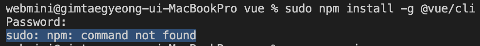맥북에서 vue 설치시 터미널에서 sudo npm install -g @vue/cli 명령어를 입력하면, sudo: npm: command not found 문구가 나올때 해결 방법입니다.