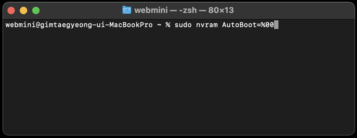 sudo nvram AutoBoot=%00