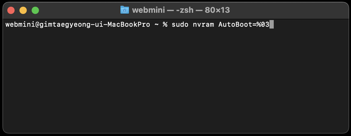 sudo nvram AutoBoot=%03