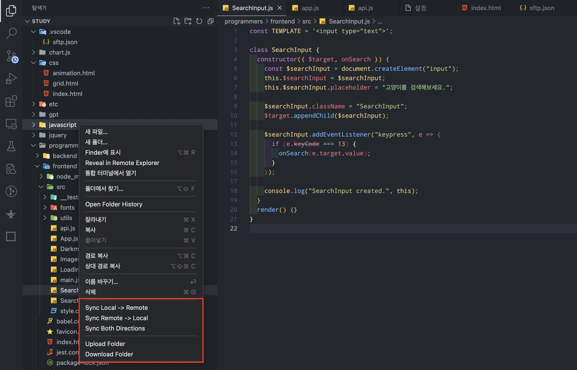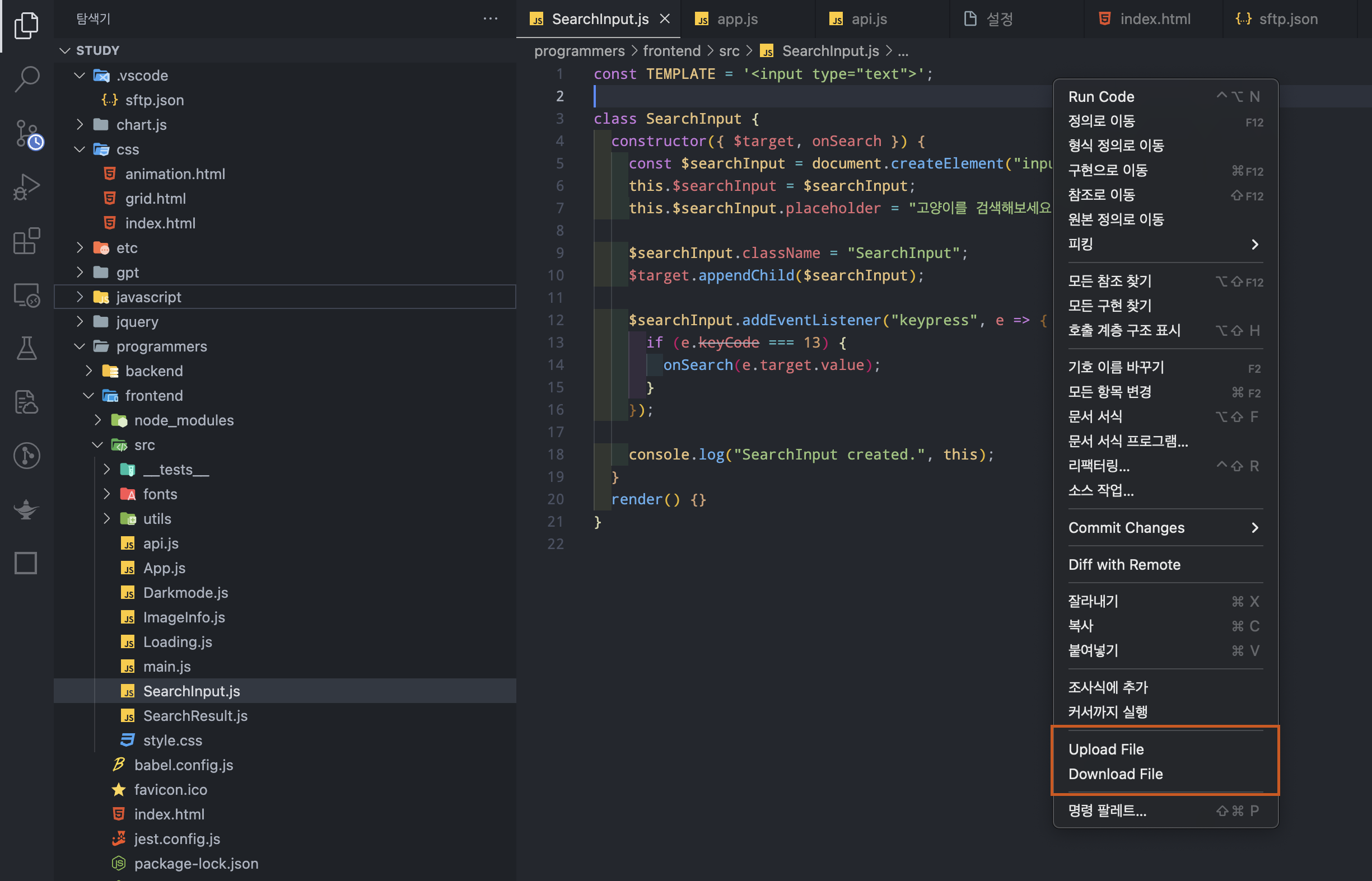 물론, 위 방식데로 세팅을 해놔서 ctrl + s 로 저장하면 자동업로드가 되지만, 이런 방법도 참고하시면 좋을듯싶습니다.