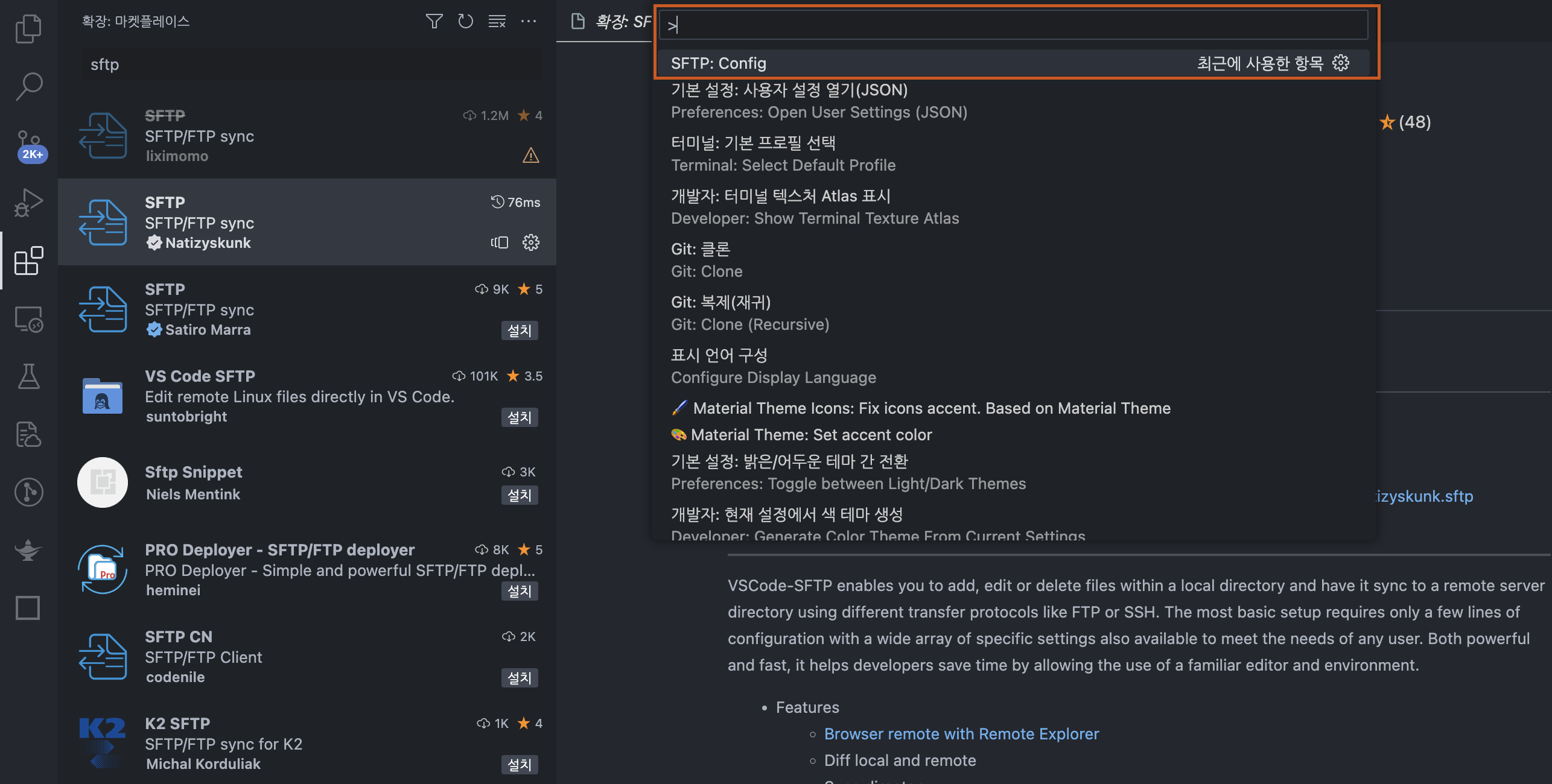 VS Code 익스텐션에서 sftp를 다운로드 받습니다.
