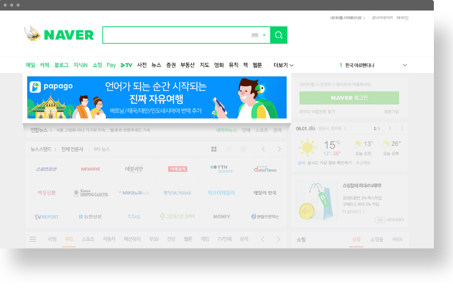 비싼 가격인데도 네이버 메인 광고가 비어있는 날이 없고, 오히려 그 시간대를 입점하기 위해서 치열한 경쟁이 있어야 합니다.