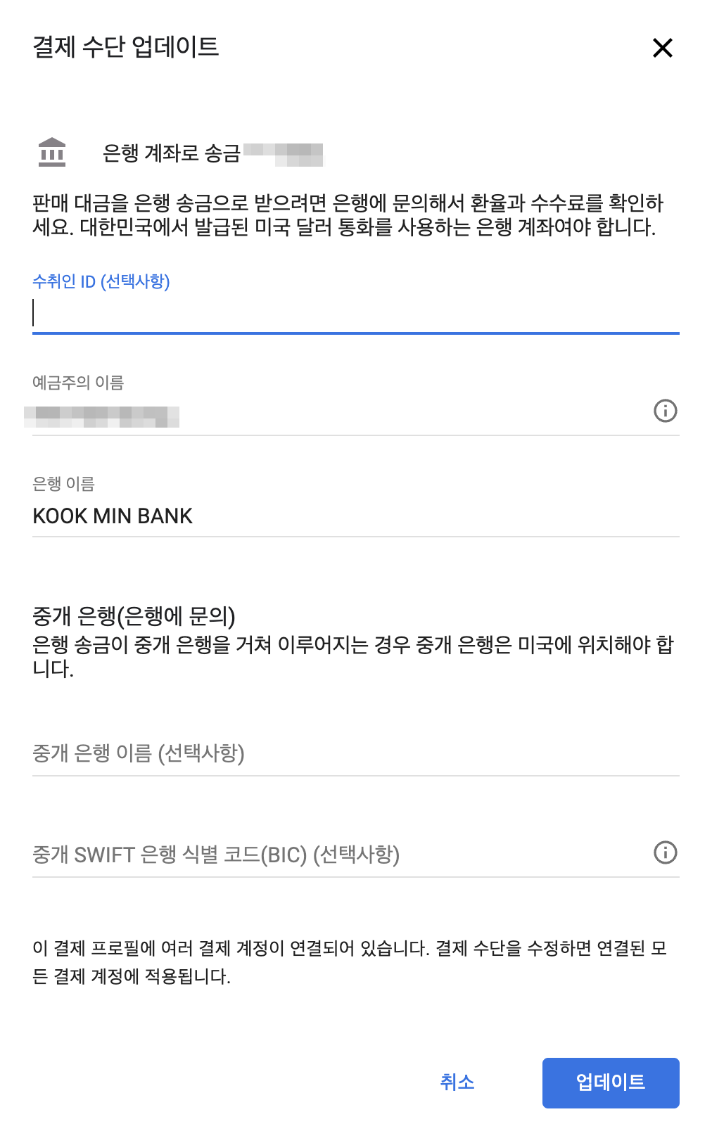 지급 결제 정보 수정