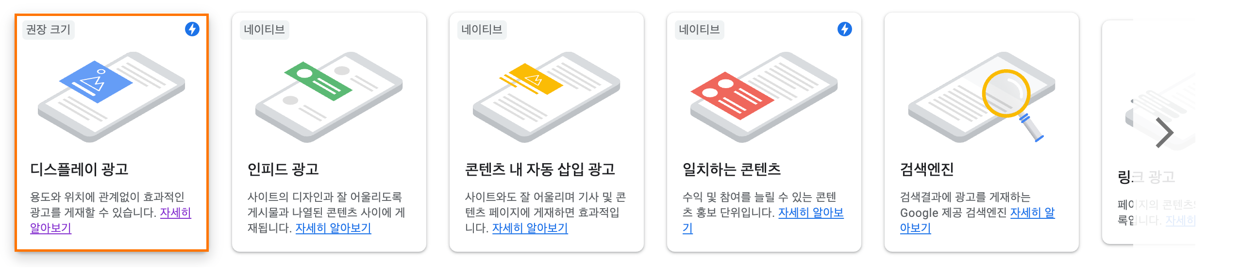 구글 애드센스 광고단위는 크게 6가지입니다.