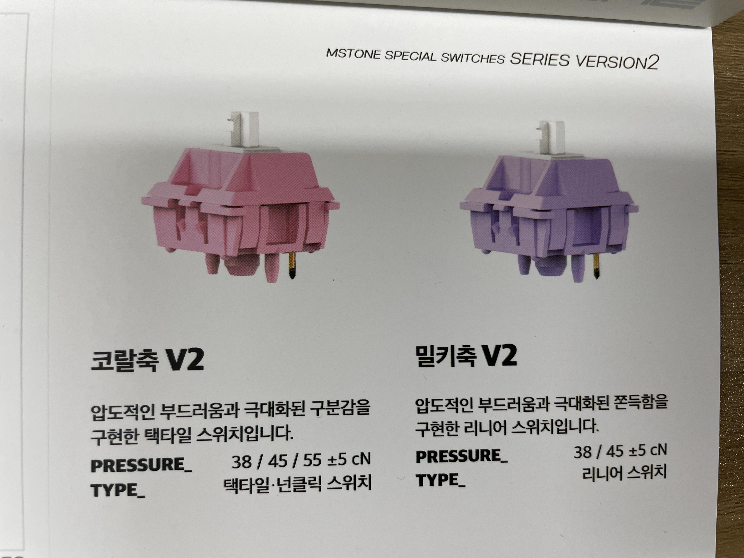 코랄축과 밀키축이 있는데 텍스트보다 직접 키감을 느껴보는 것을 추천한다.