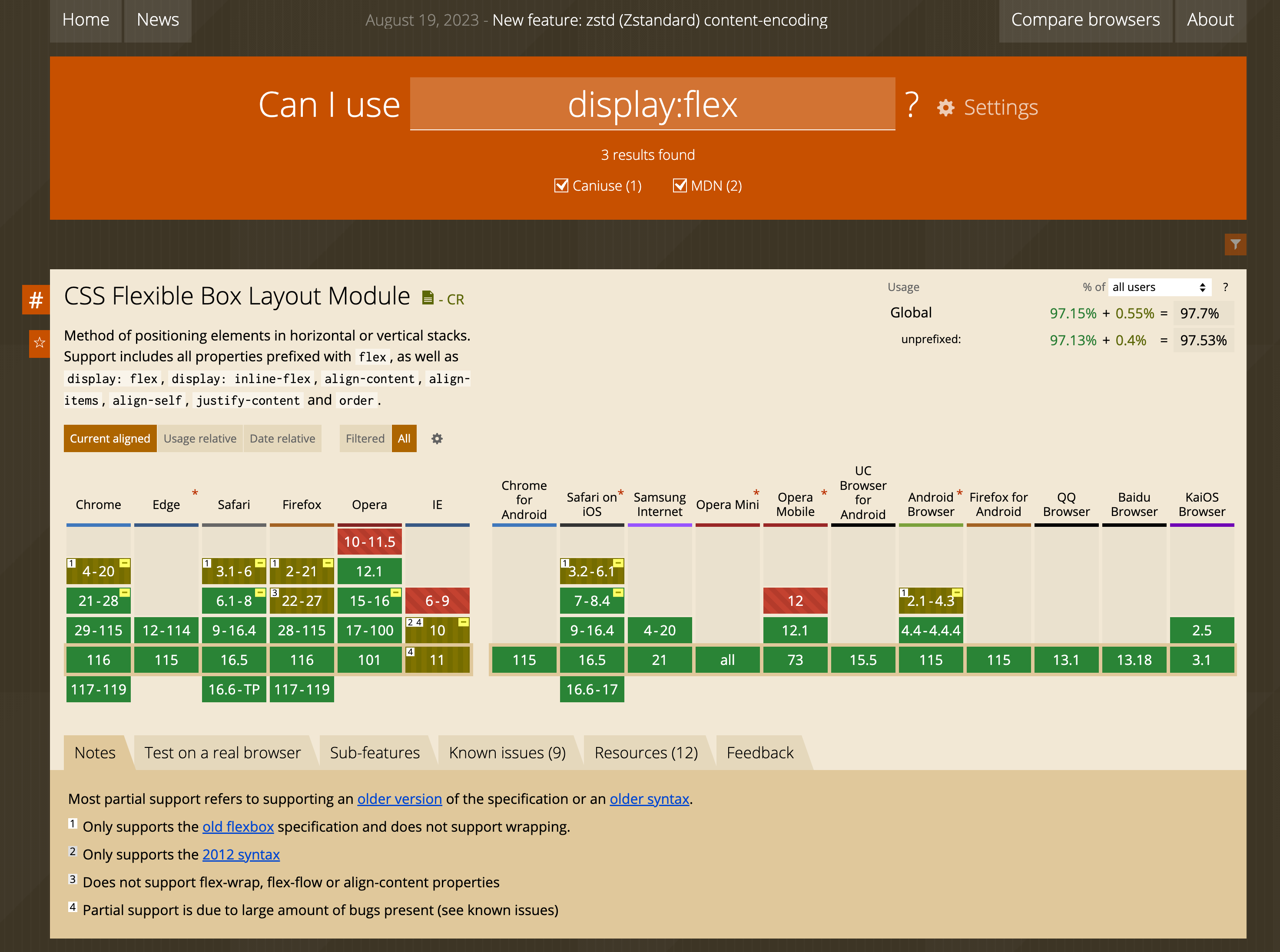 display:flex;와 display:grid; 속성의 브라우저 호환성은 일반적으로 매우 좋습니다.