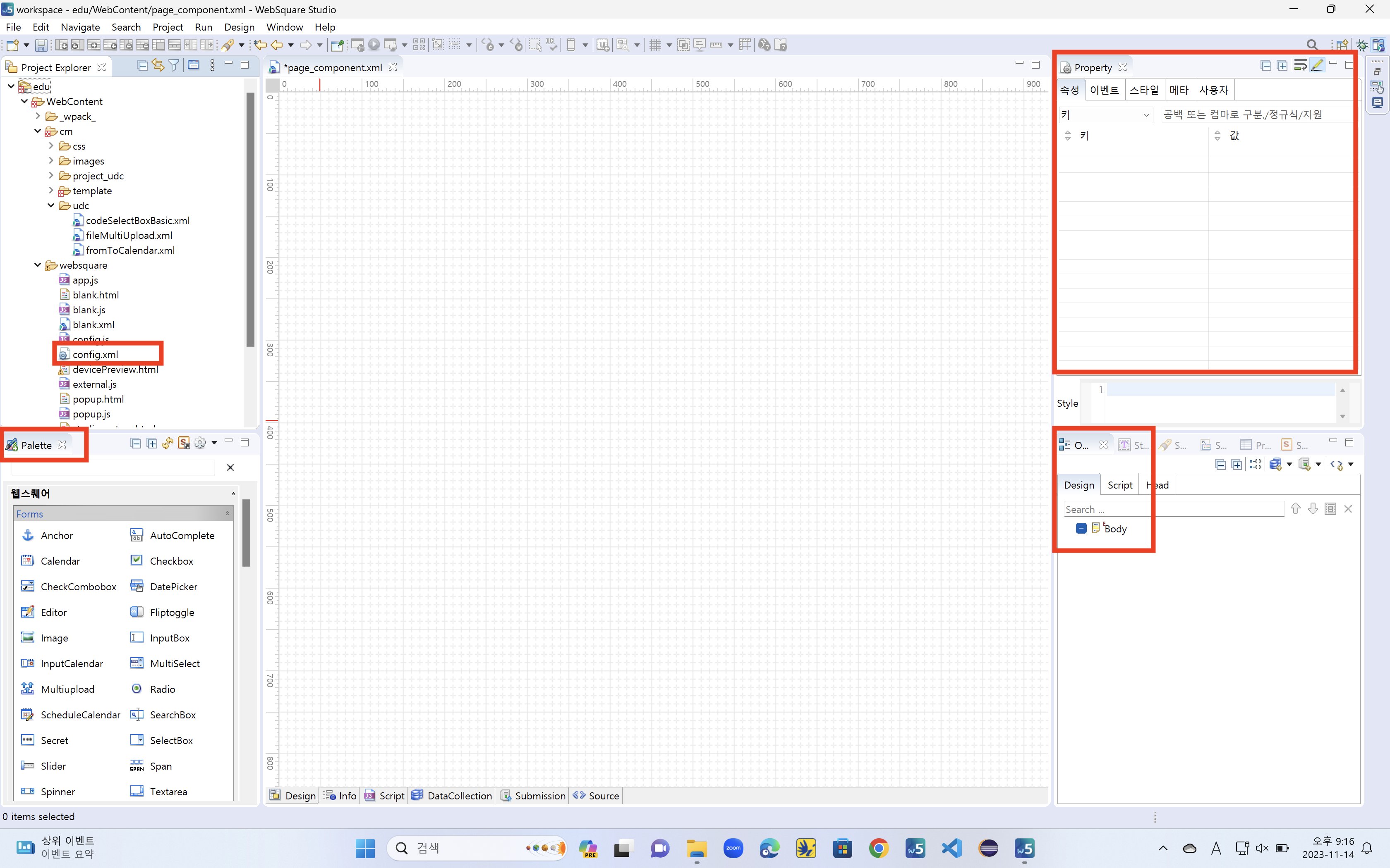 websquare > config.xml 에서 해당 프로젝트의 설정을 세팅할 수 있다. ex) js, css 등을 기본적으로 호출할 수 있다. (페이지에 항상 불러오는 파일)