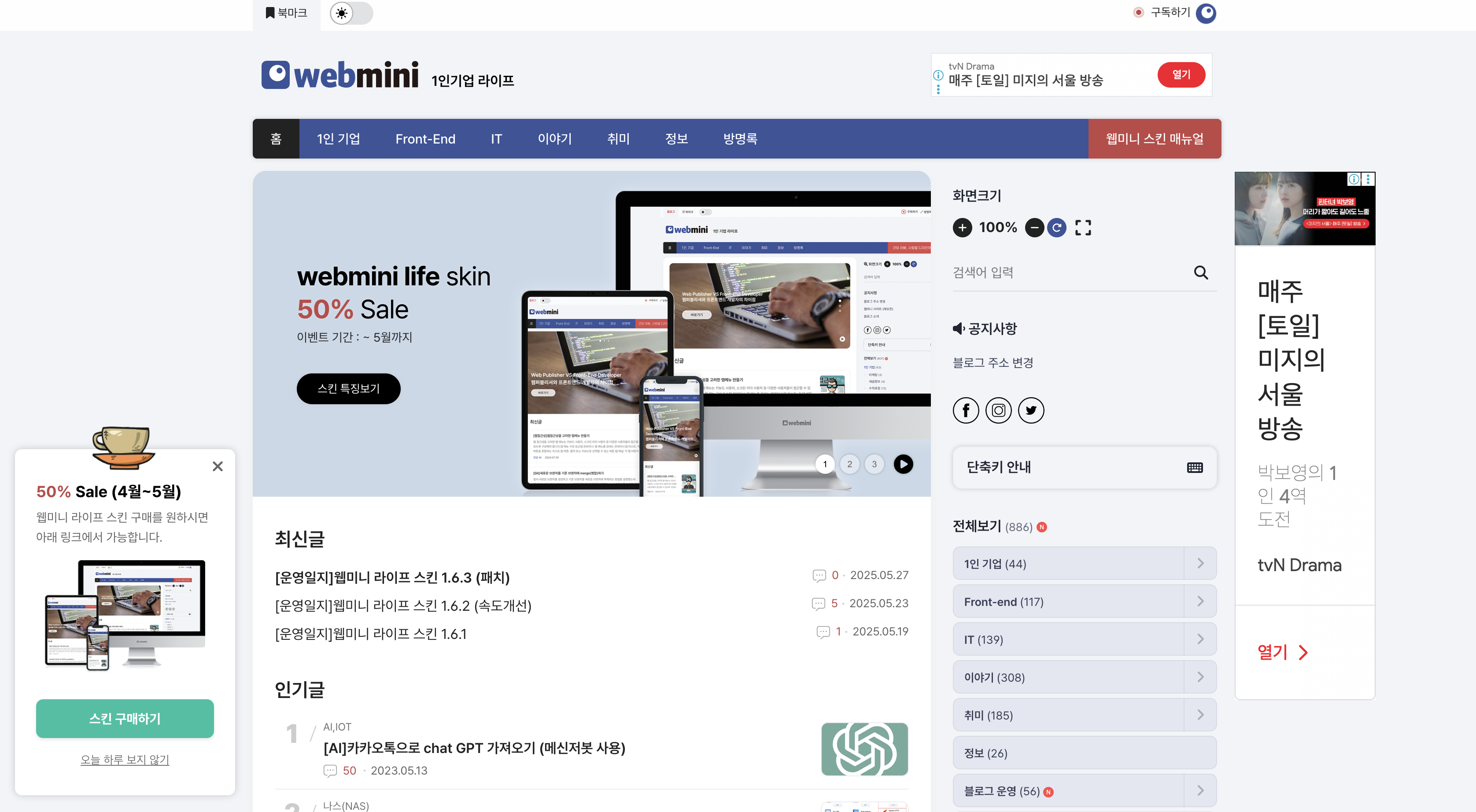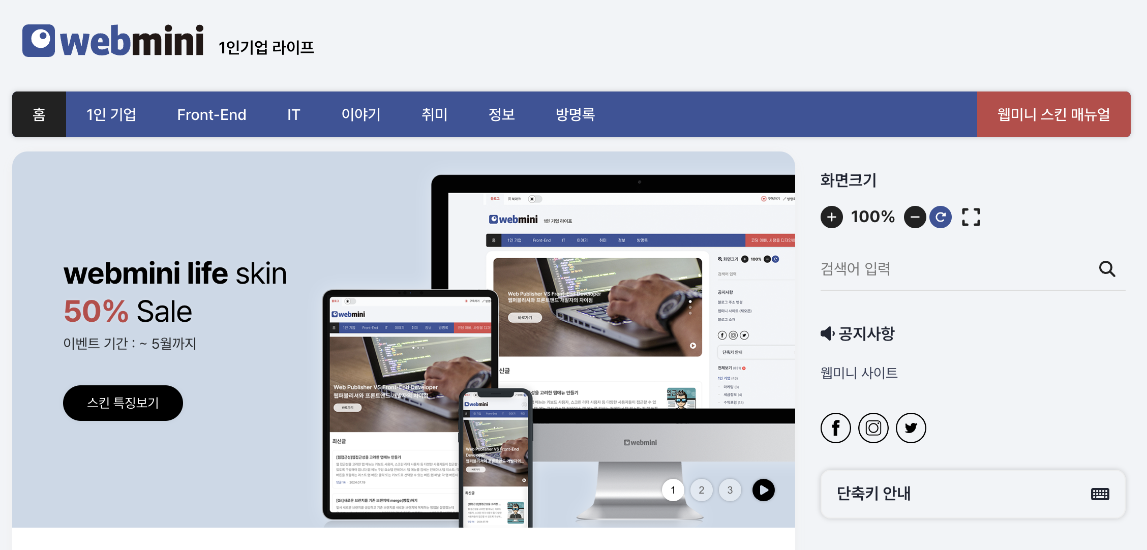 웹미니 라이프 티스토리 스킨 특징