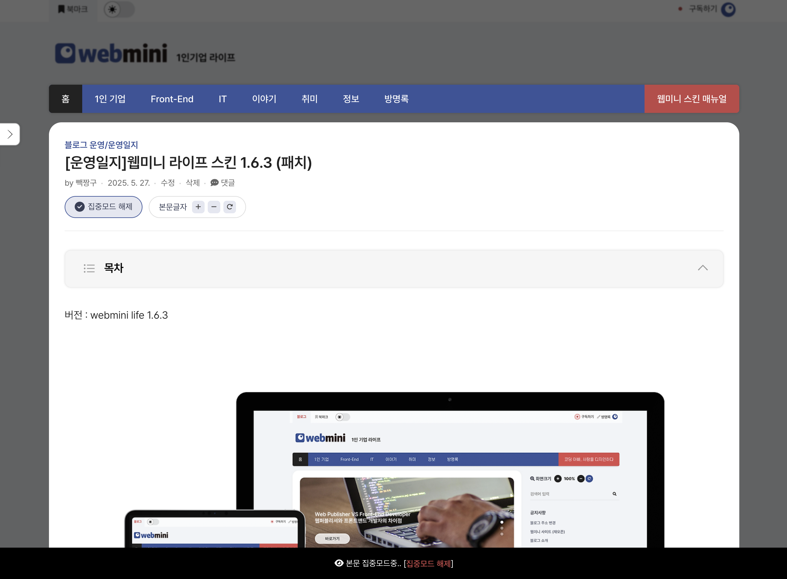 - 본문 집중모드