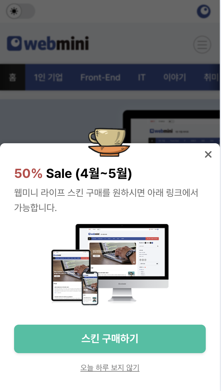 - 알림팝업 '오늘 하루 보지 않기' 기능추가