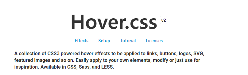 <link rel="stylesheet" href="https://cdnjs.cloudflare.com/ajax/libs/hover.css/2.3.1/css/hover-min.css">