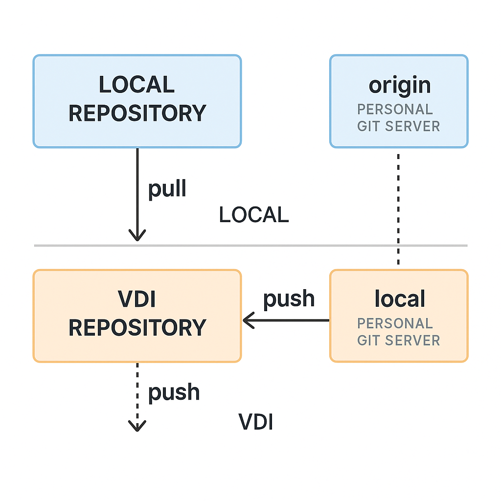 그리고 내부망(VDI)에서는 로컬에서 작업한 local 저장소에서 pull을 받으시면 됩니다.