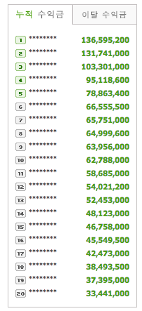 한달에 천을 넘게 버는 사람도 있고, 누적 수익금으로 억단위를 넘긴 사람도 있다. 물론 순위에는 없지만 용돈벌이 정도로 하는 사람도 있을것이다.