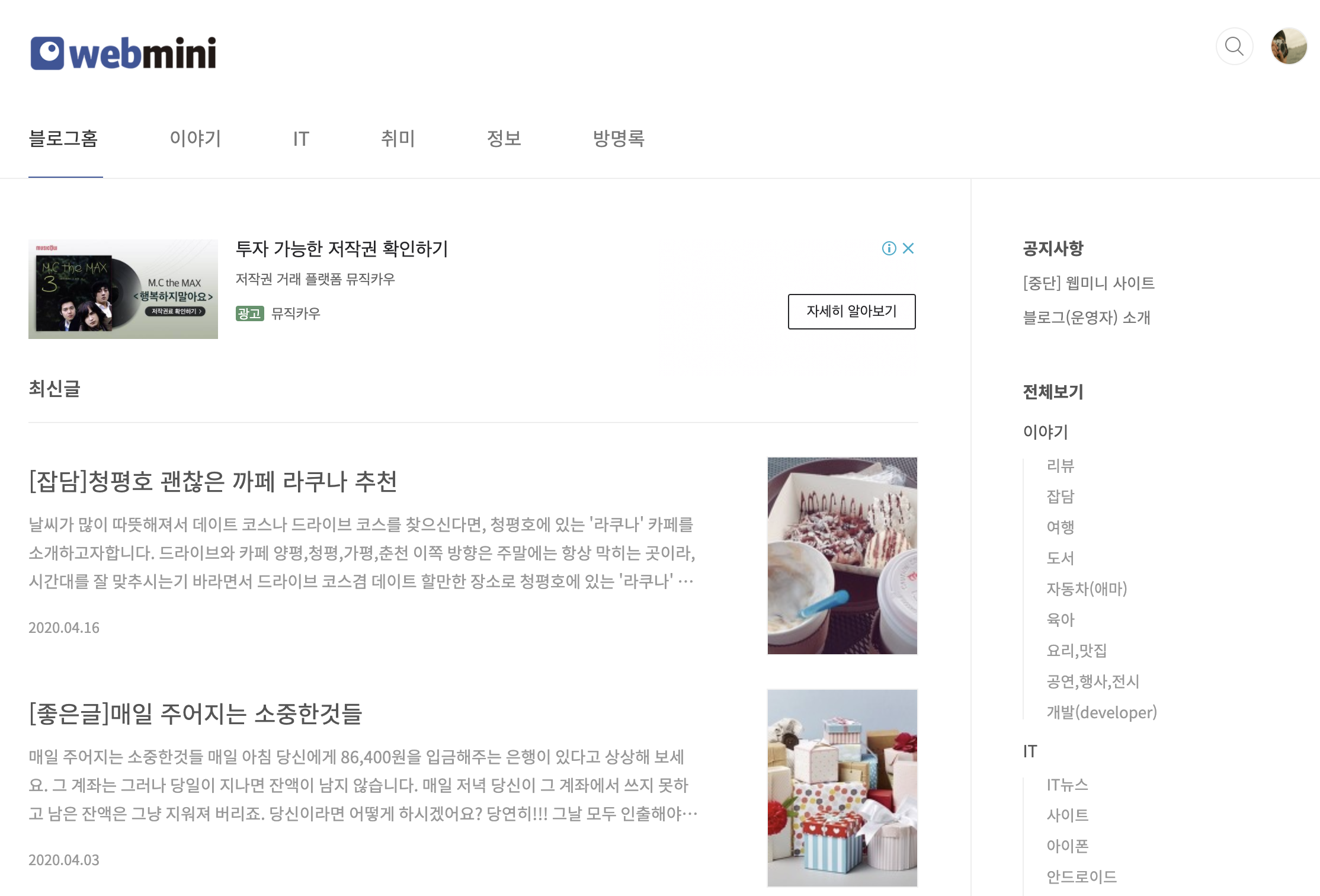 기본 스킨에서 웹미니에 맞게 커스텀 중이며, 계속적으로 추가할 계획입니다.