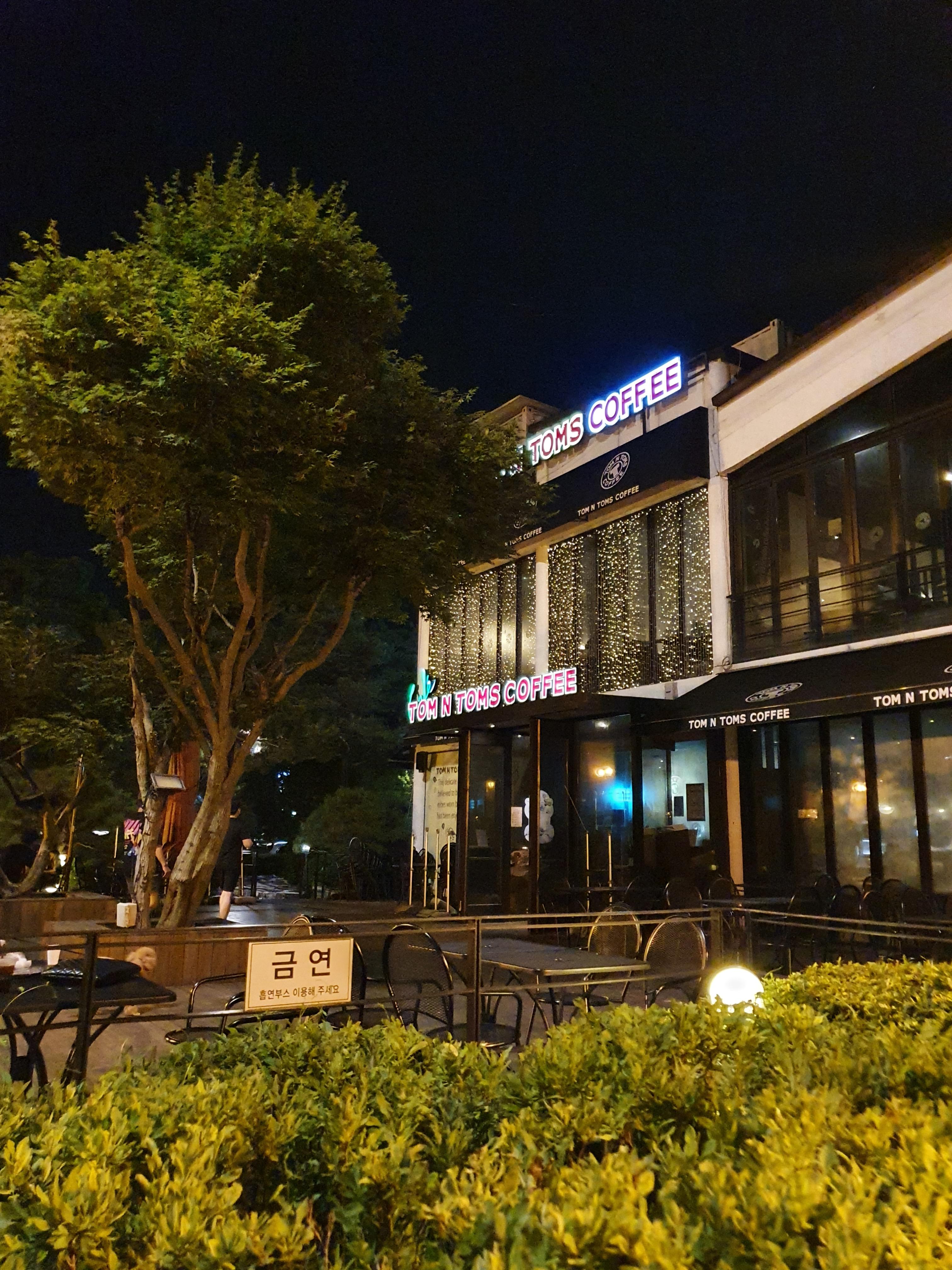 탐앤탐스 2층에는 실내에 흡연실도 있으며, 야외에서 마시는 커피도 괜찮습니다.