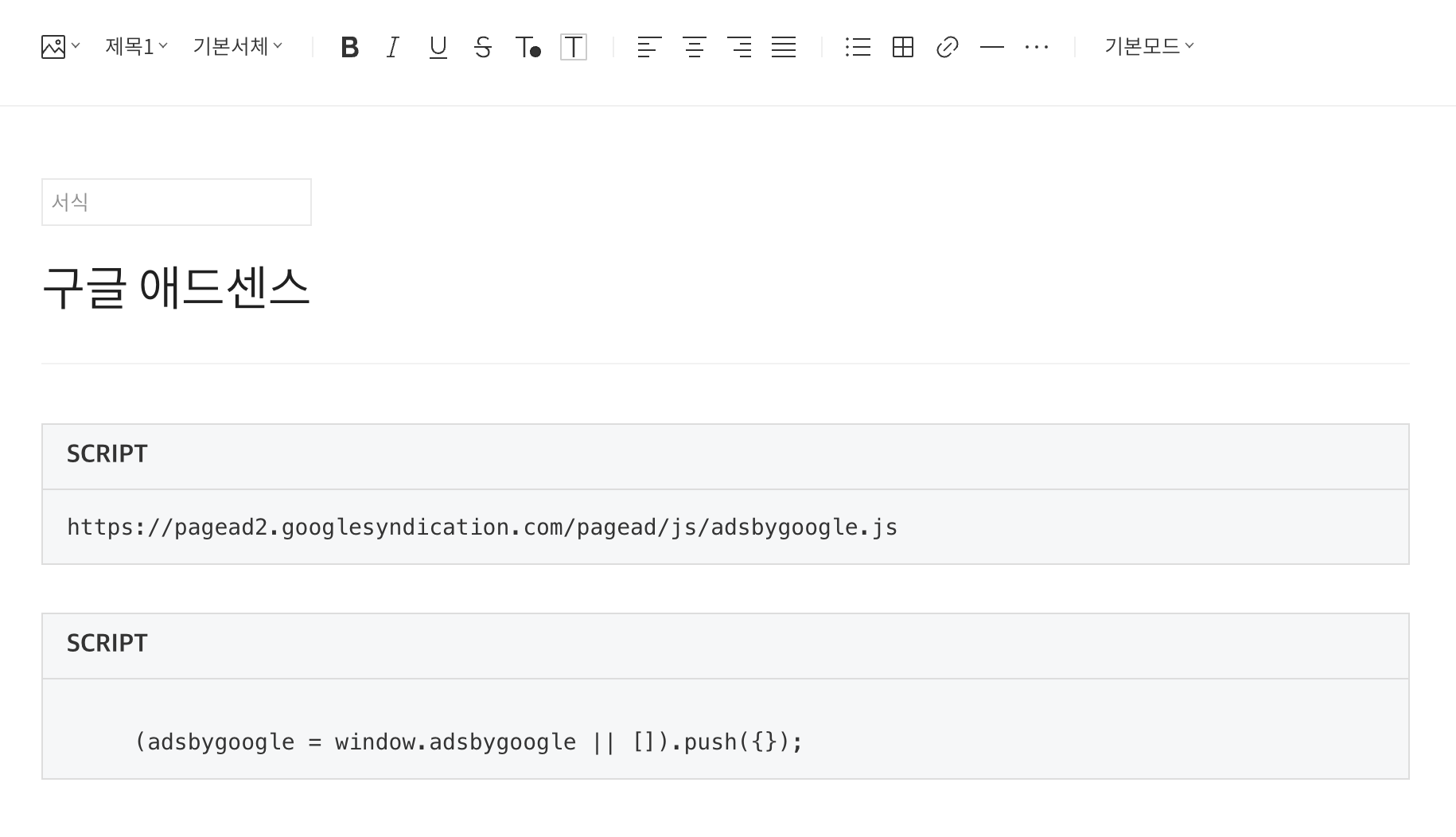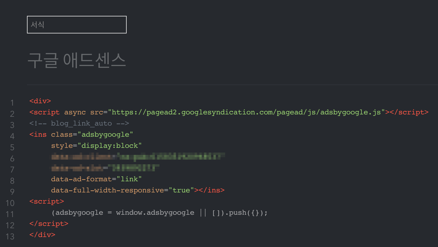 일단 광고 코드를 서식으로 등록하는건 완료입니다.