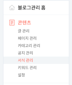 2. 블로그 관리자 홈에 '서식 관리' 메뉴를 클릭합니다.