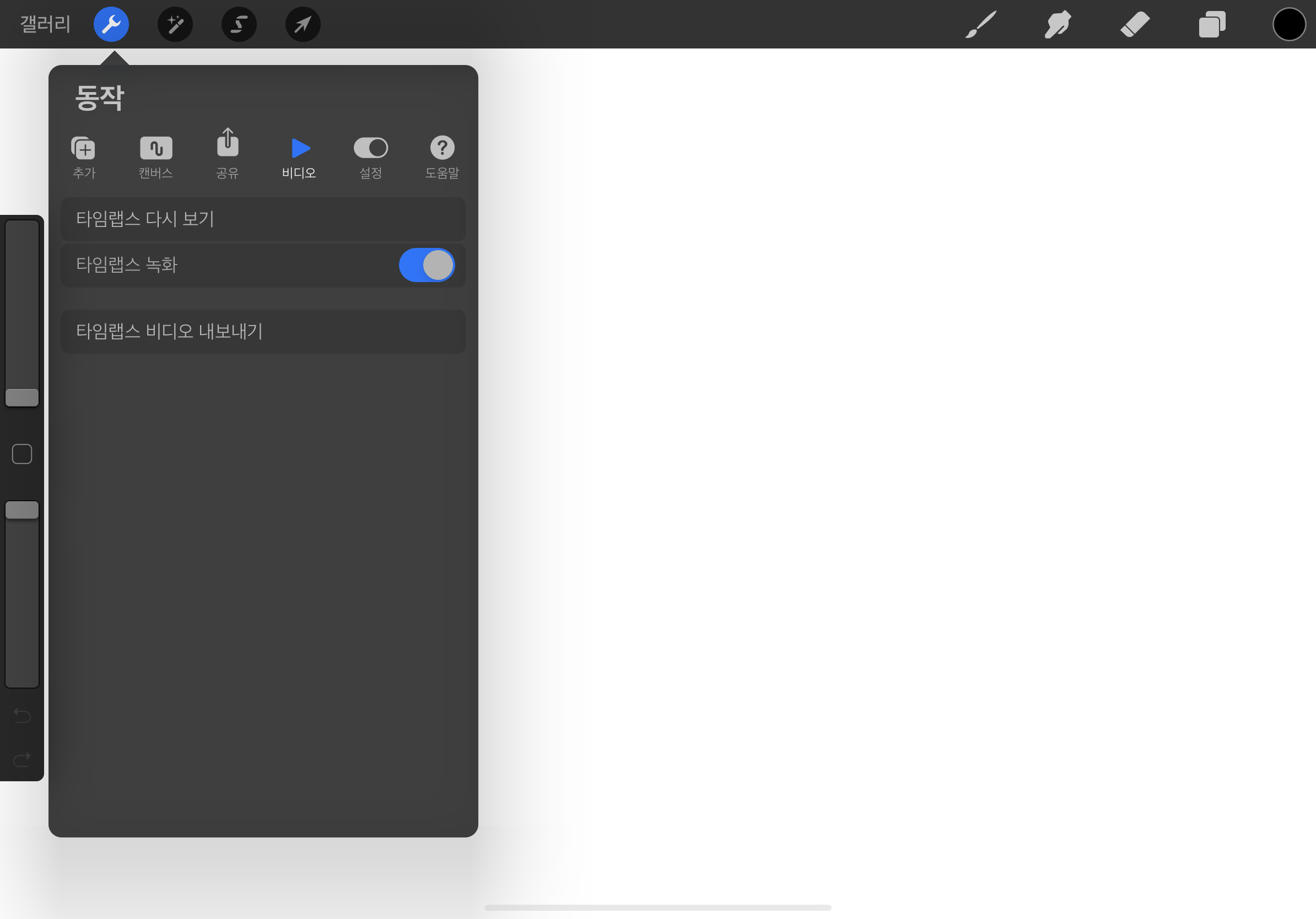 타임랩스를 통해 작업내용을 녹화 할 수 있습니다.