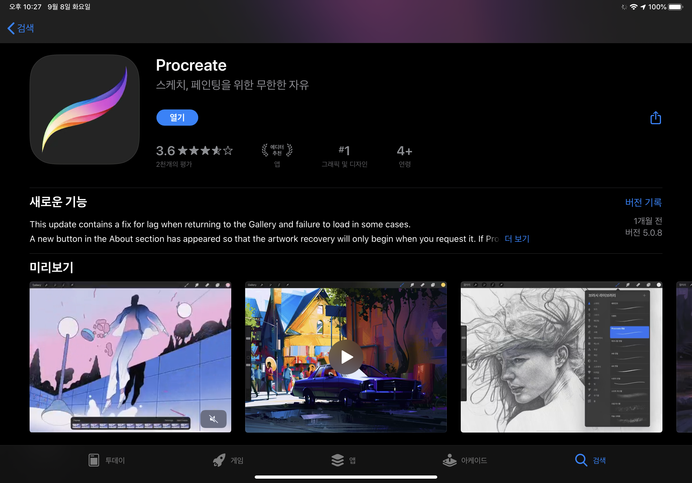 사실 스케치, 드로잉, 수채화, 이모티콘등을 아이패드에서 그리는 분들이라면, 많은 분들이 프로크리에이트를 사용하리라 짐작합니다.