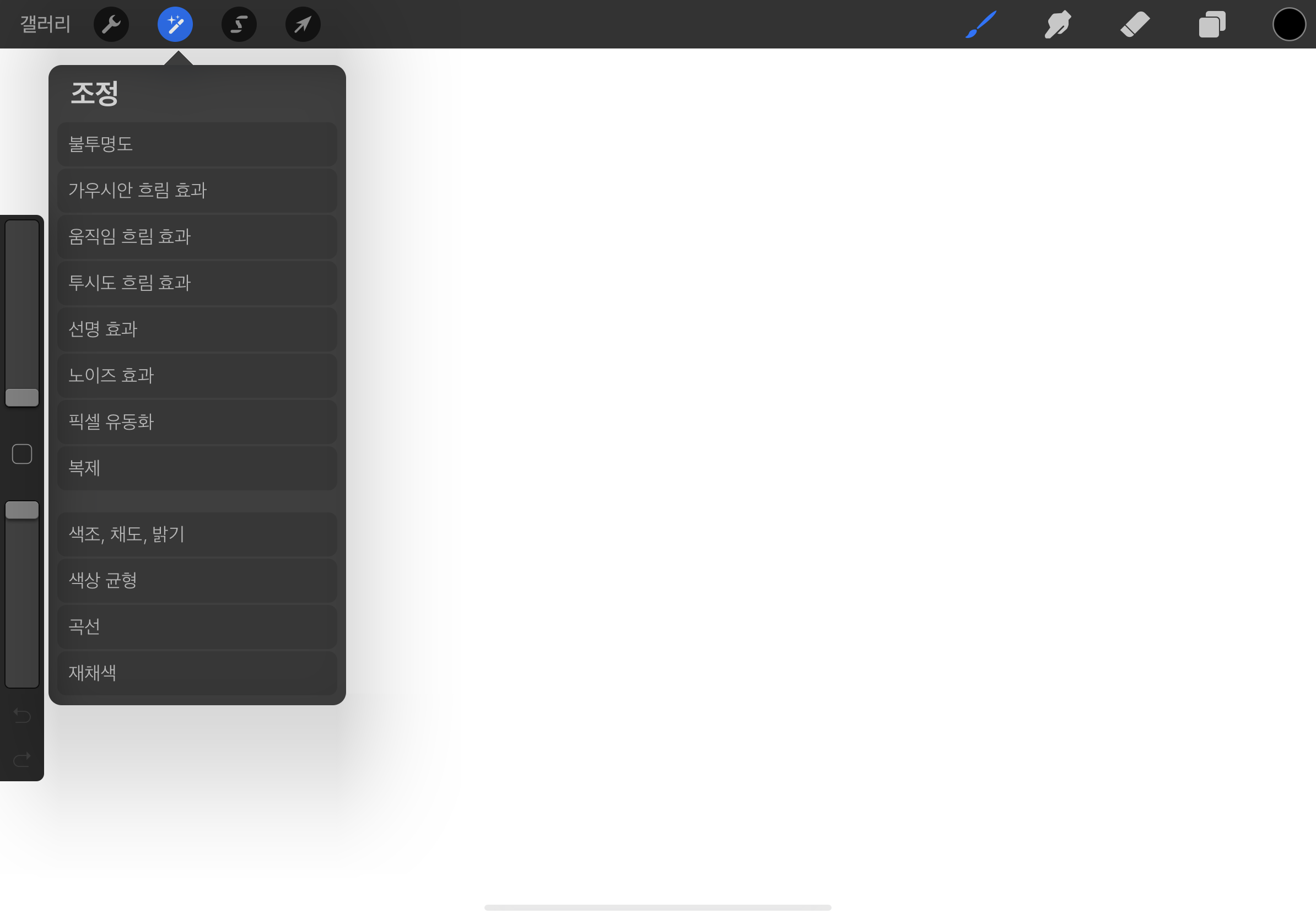 프로크리에이트에 장점은 인터페이스가 단순하면서도 깔끔하며, 기능면에서도 군더더기 없는 어플입니다.