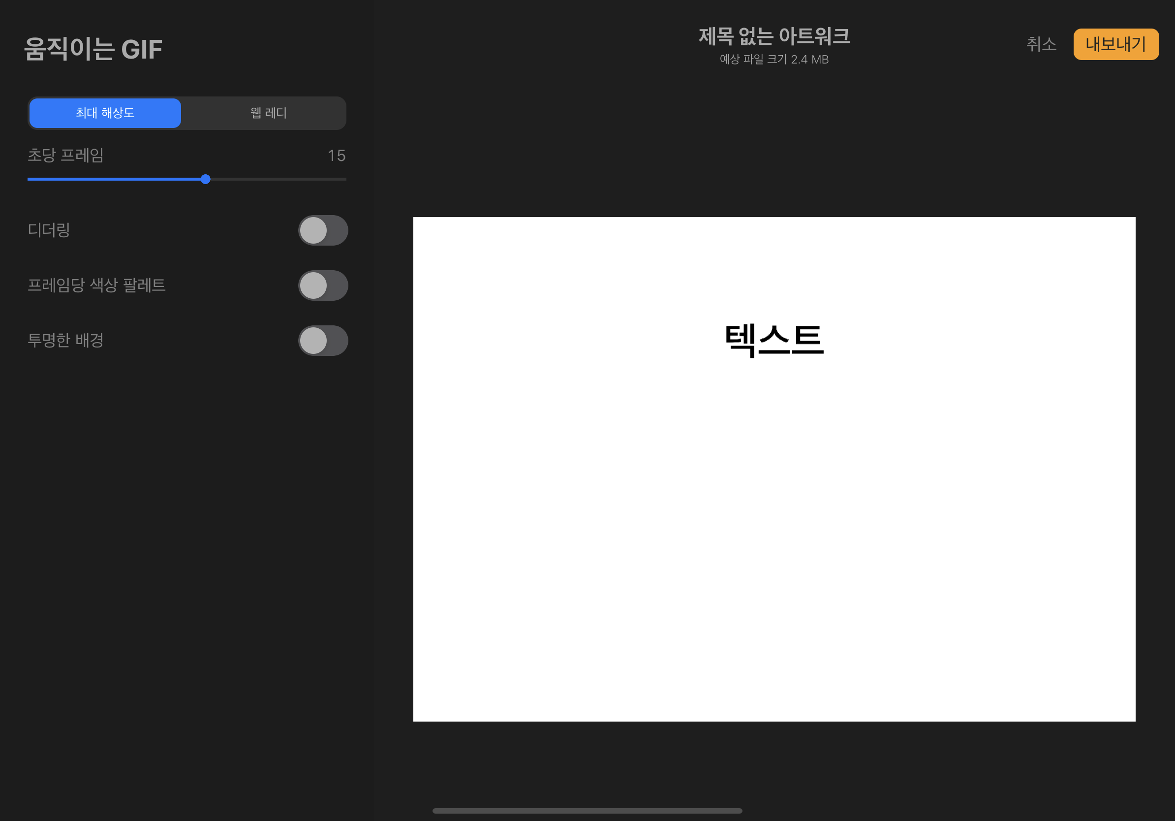 저장 방식도 다양하며, 움직이는 gif도 손쉽게 제작이 가능합니다.