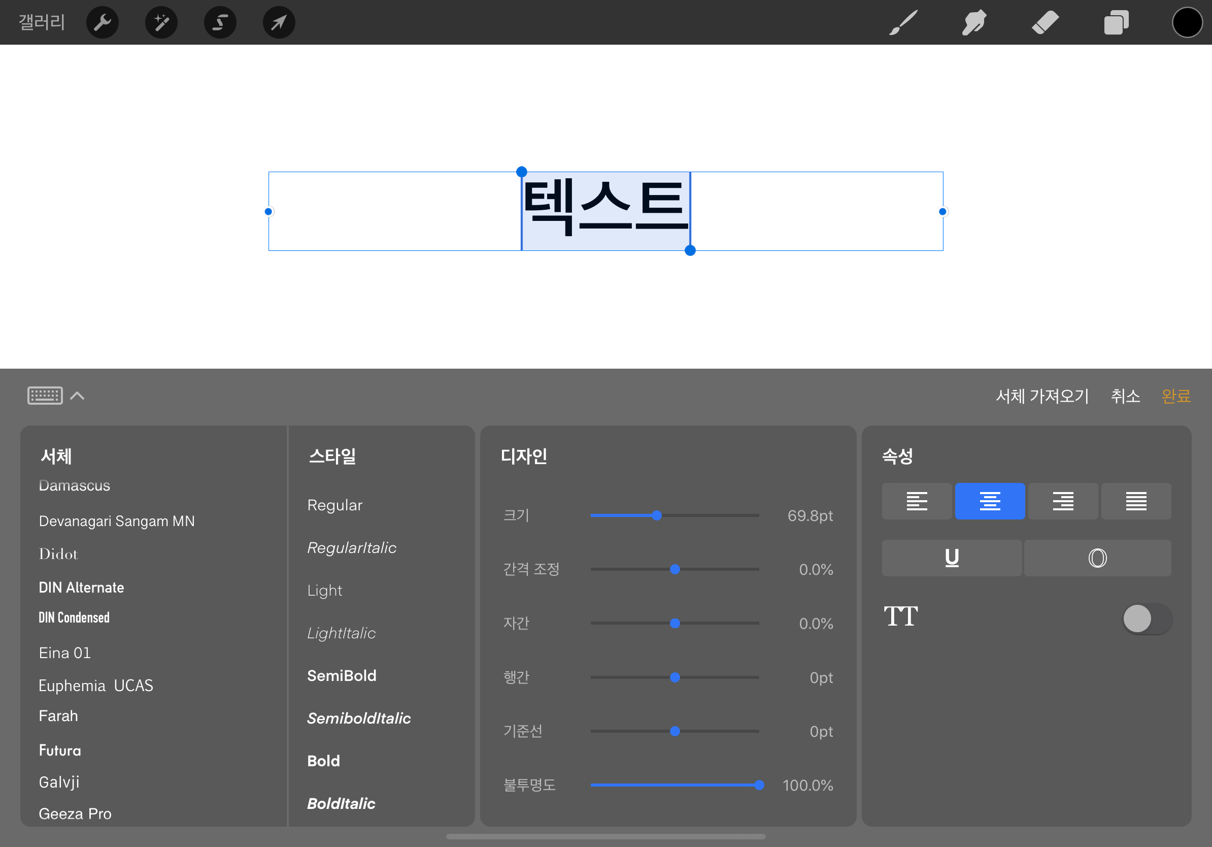 텍스트도 필요한 옵션들이 대부분 포함되어있습니다.