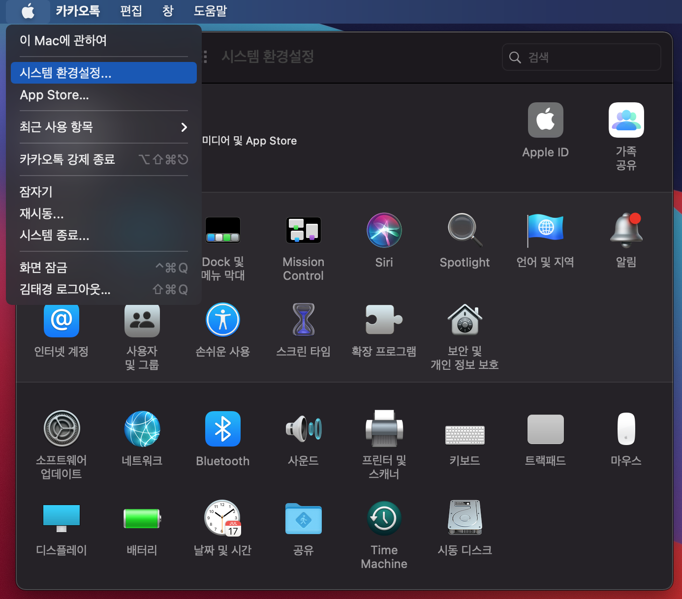먼저 시스템 환경설정에서 '손쉬운 사용'을 클릭합니다.