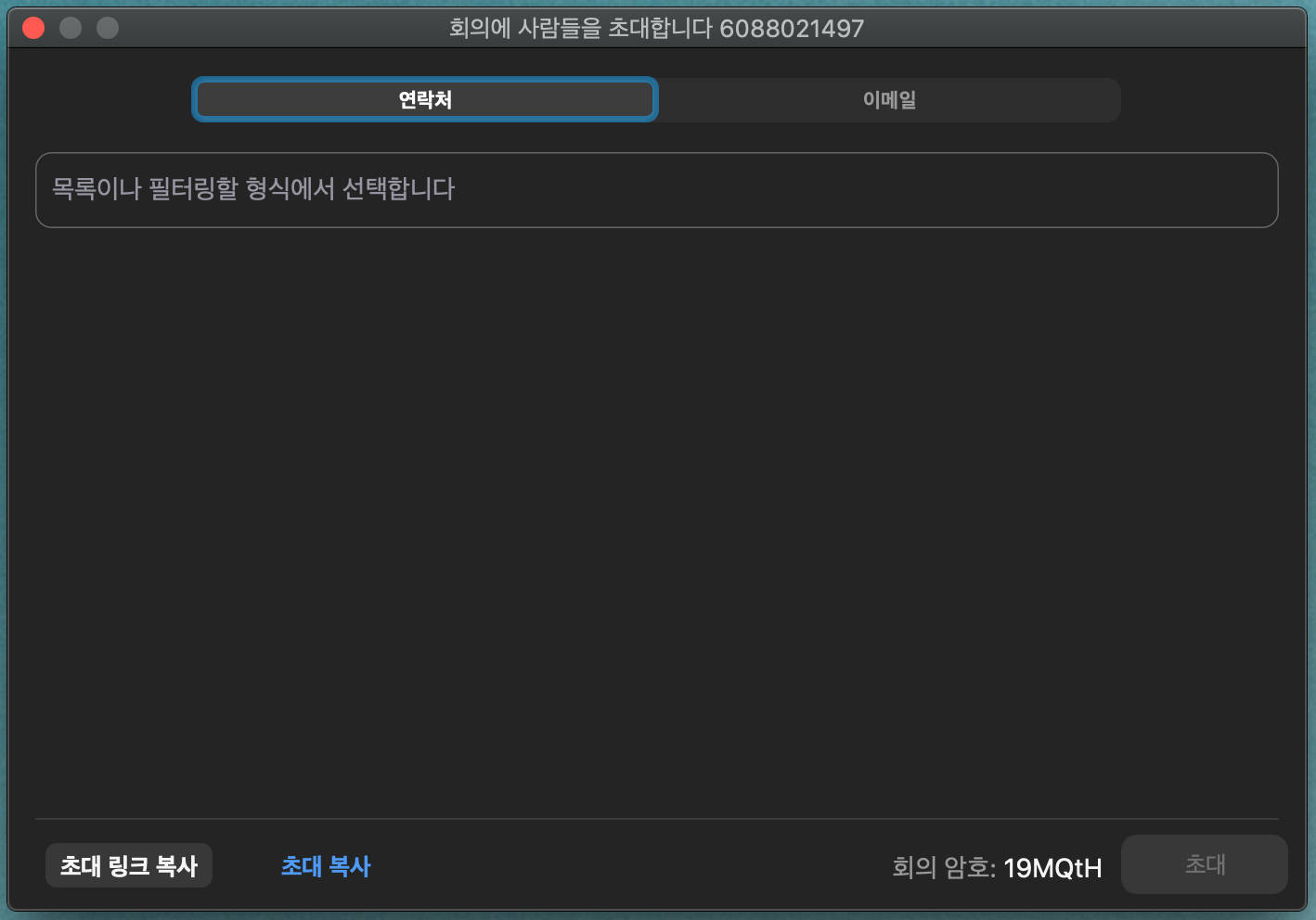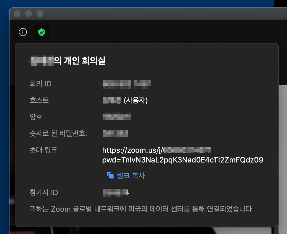초대 링크로 공유할 시 따로 회의 ID와 비번을 입력할 필요는 없으며, 초대 링크가 아닐경우 회의 ID와 암호를 같이 공유해주시면 됩니다.