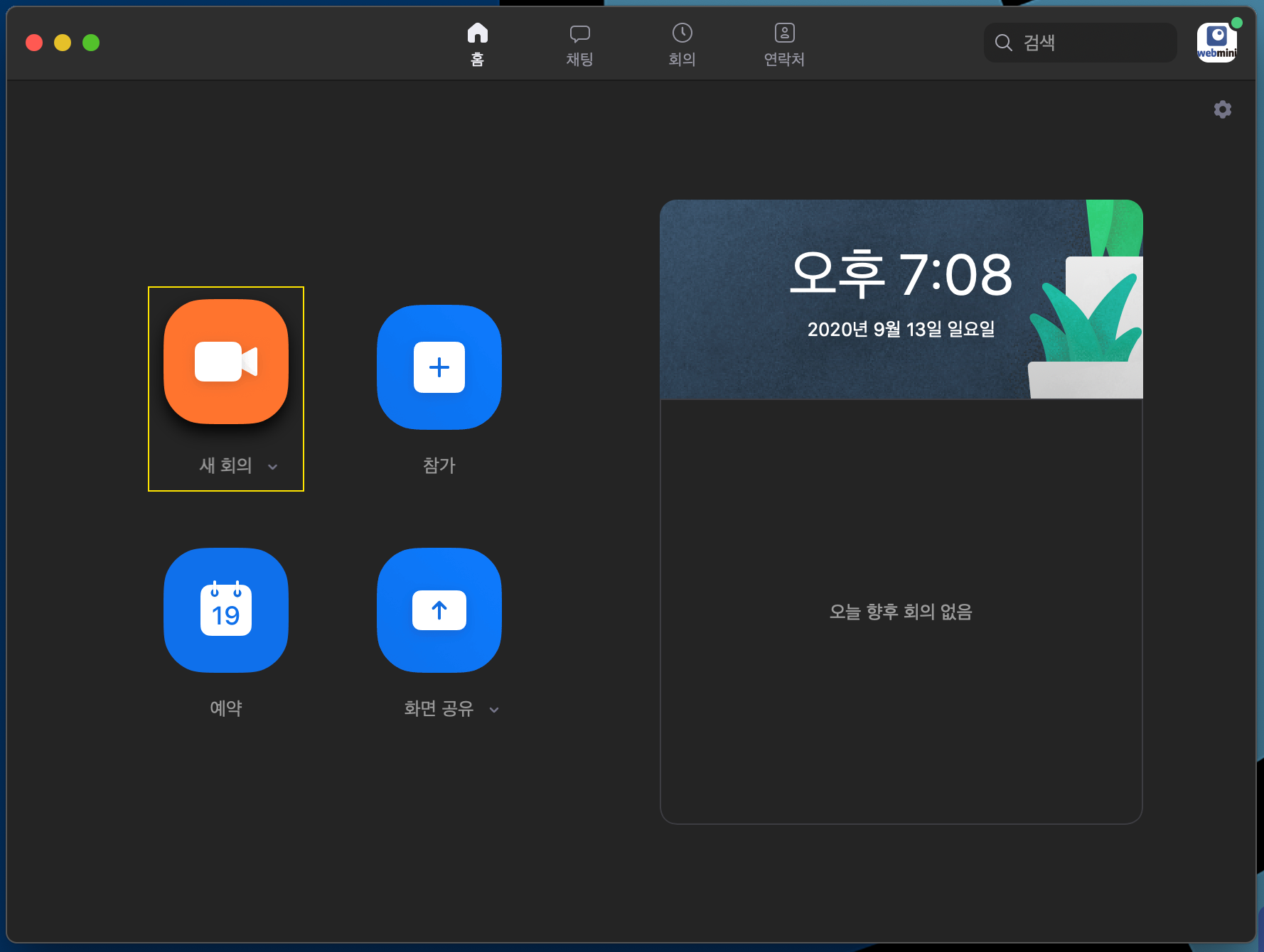 그후 '새 회의' 추가를 해줍니다.