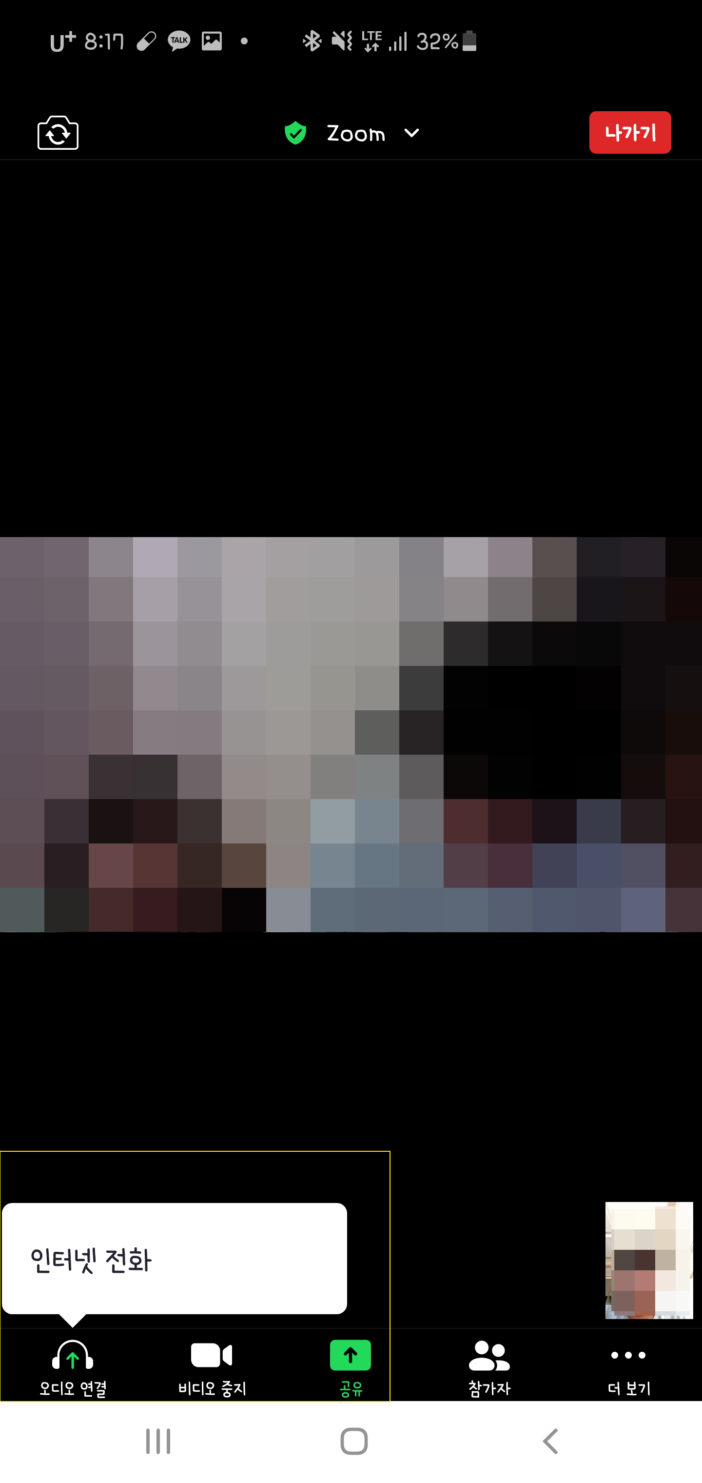 혹시나 마이크 소리가 주최자에게 안들릴 수도 있으니, 접속한 영상 하단 좌측에 오디오 연결에서 '인터넷 전화'를 클릭 해주세요.