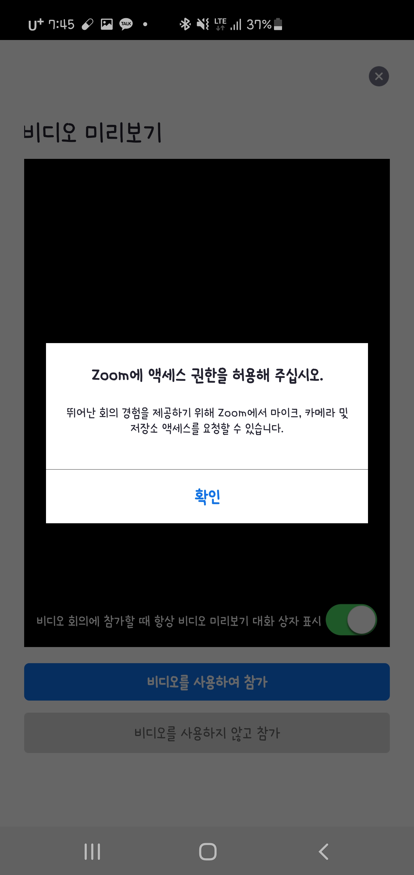 설치를 마쳤으면 줌(ZOOM)을 실행하시고,비디오는 잘나오는지 마이크 상태는 괜찮은지 체크를 해주셔합니다.