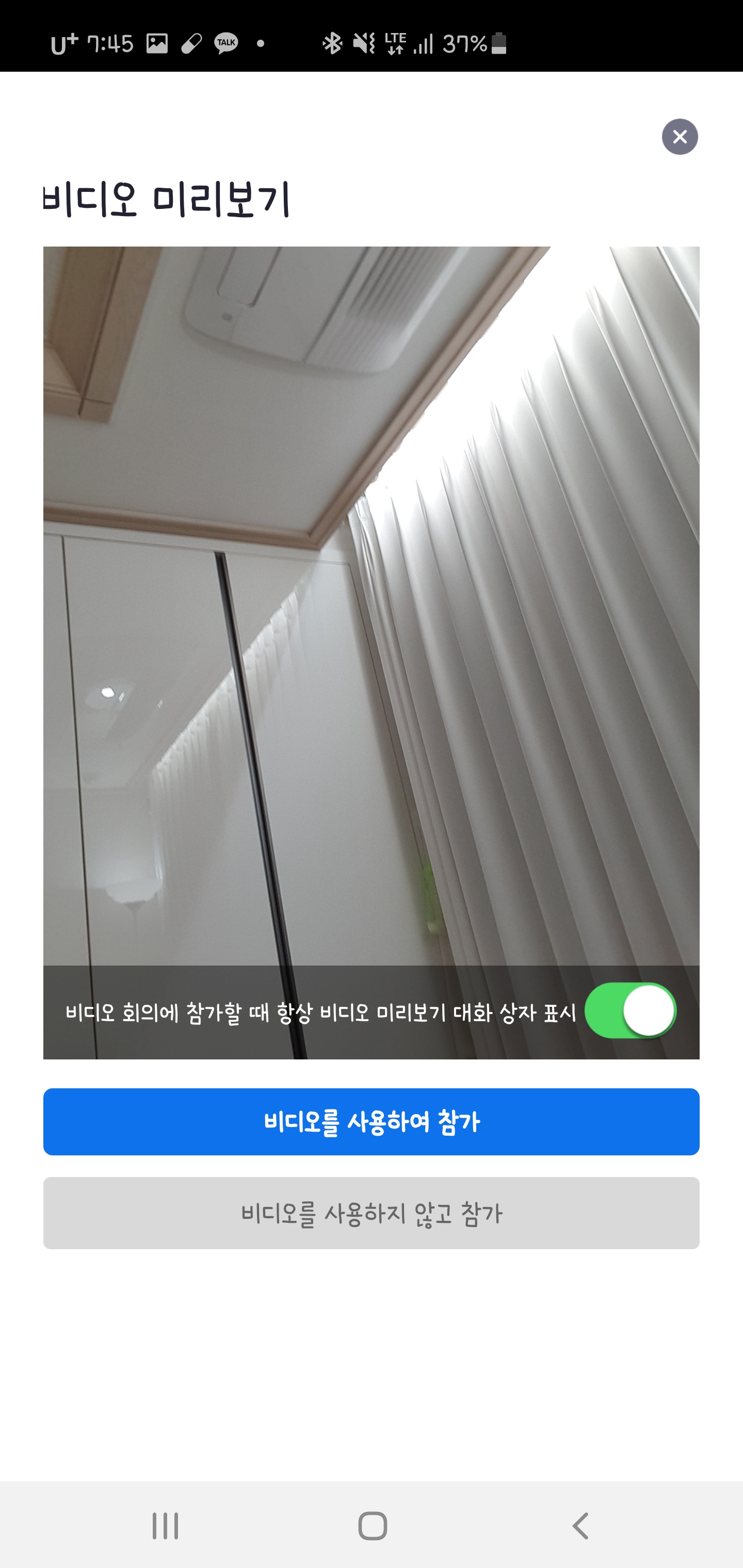 주의할부분이 회의참가창에서 '오디오에 연결하지 않음'과 '내 비디오 끄기' 체크 해제를 해주셔야합니다.