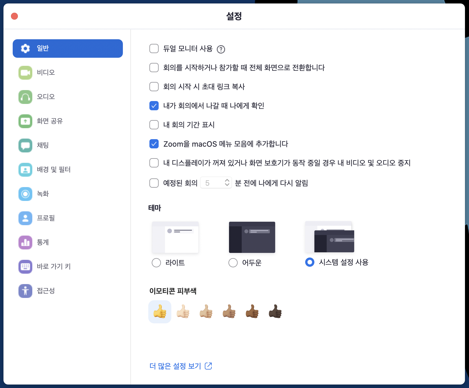 전부 설정을 하실 필요는 없고 제일 중요한 비디오와 마이크 부분만 체크해주셔도 됩니다. 듀얼 모니터를 사용하시는 분도 체크해주세요.