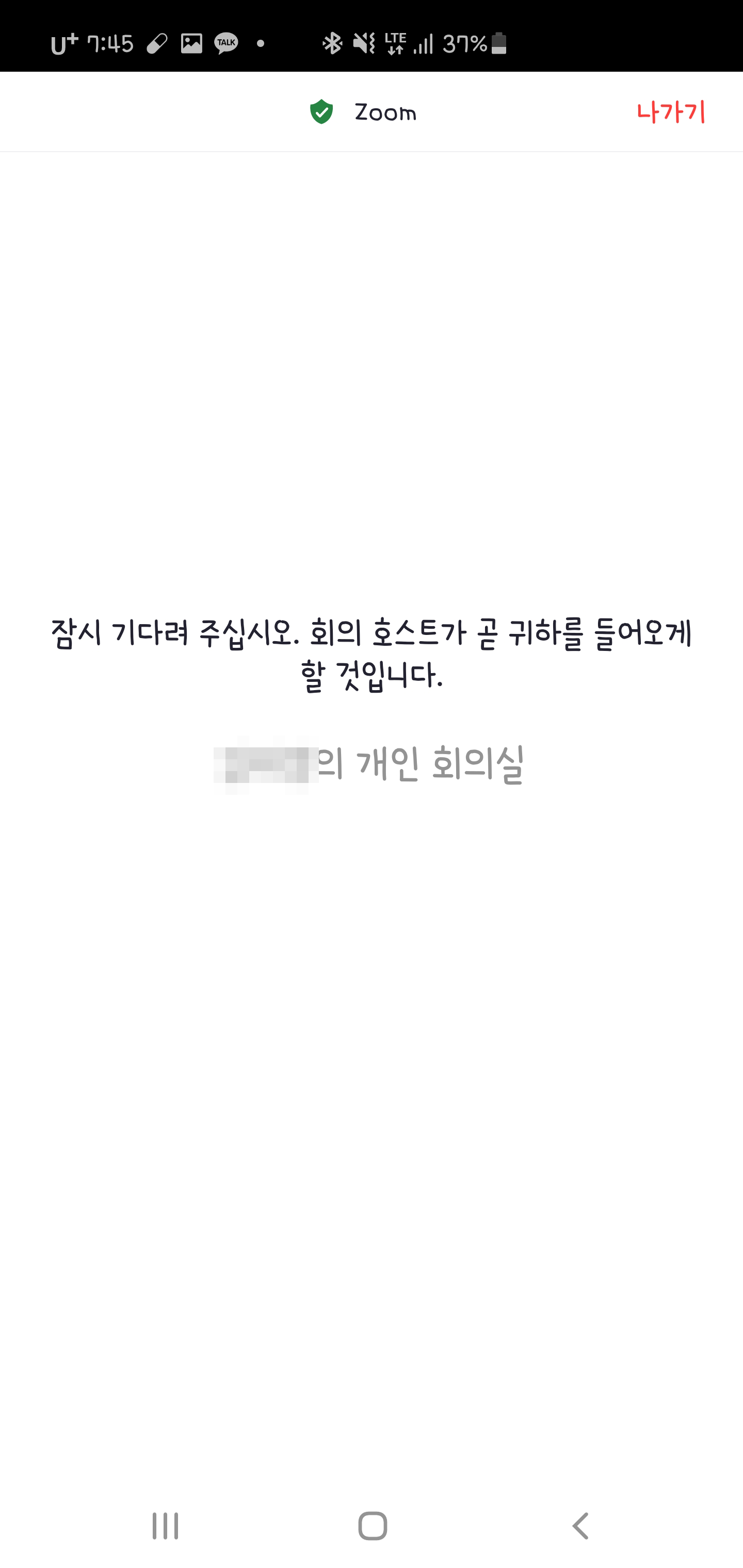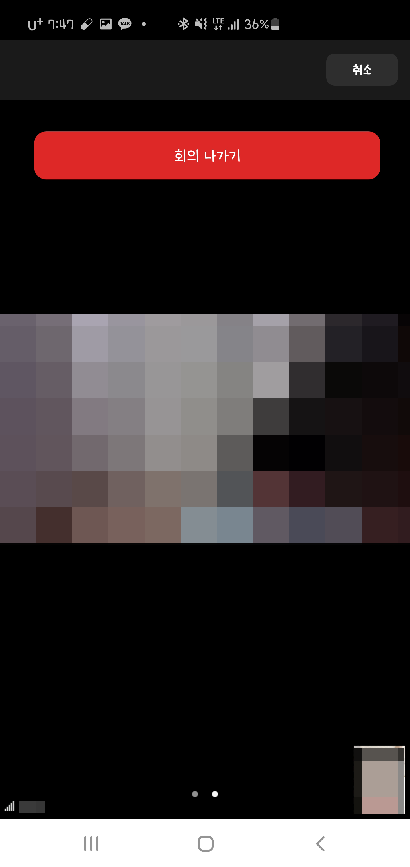 그리고 회의(수업)이 끝났으면, 나가기 버튼을 누르시면 됩니다.