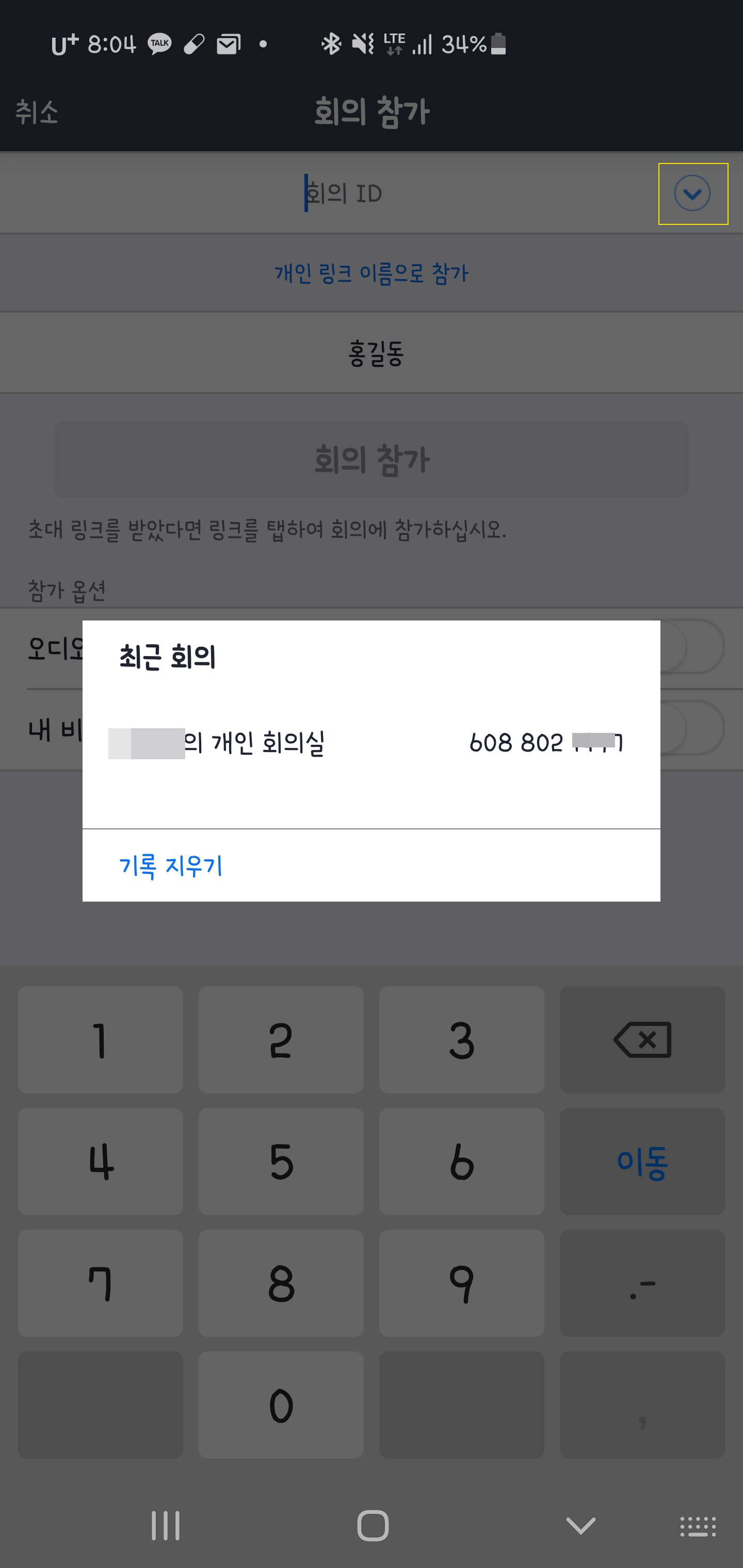 상단 우측에 화살표를 클릭하시면 참가했던 회의실이 보여집니다.