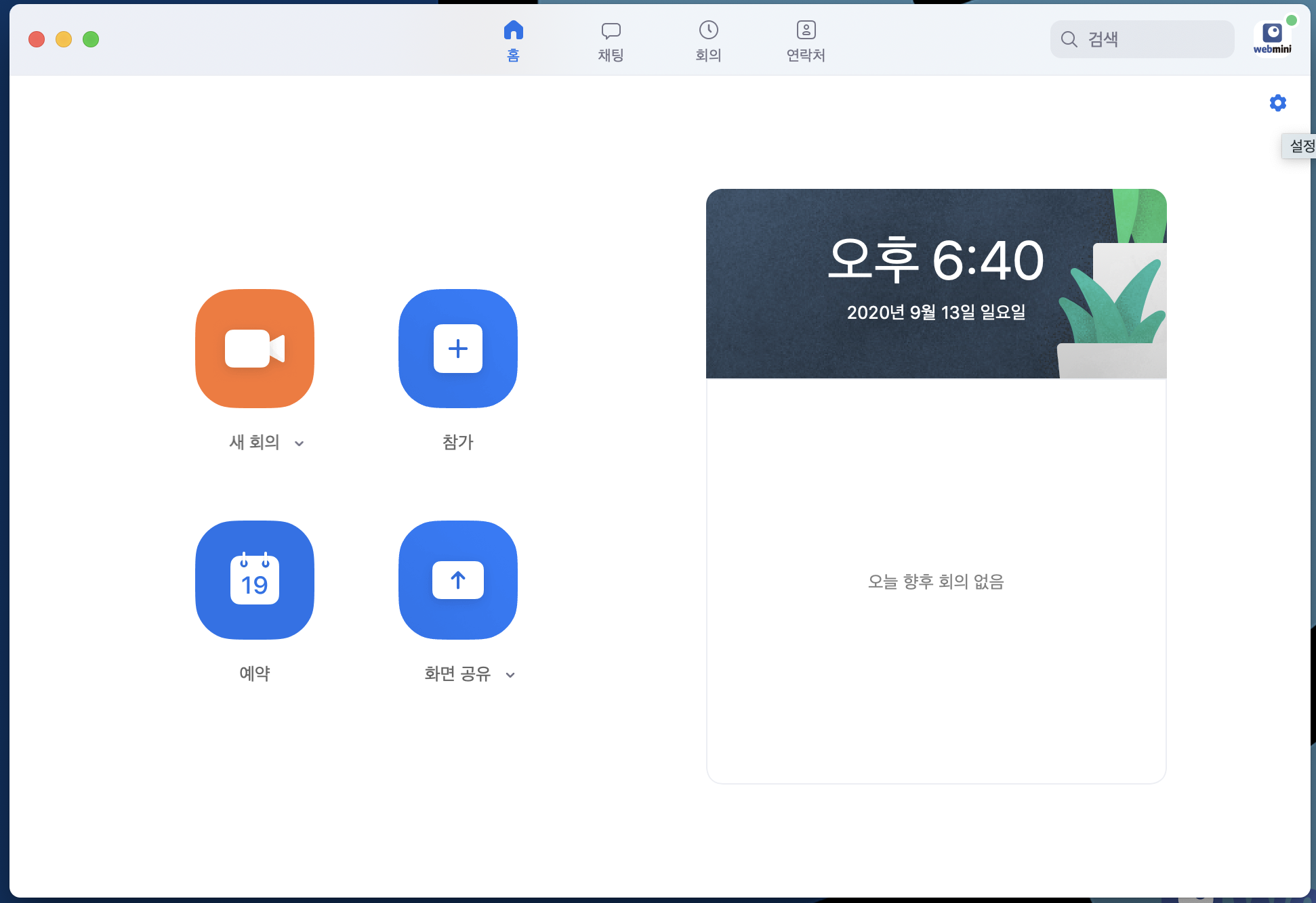 설치를 마쳤으면 줌(ZOOM)을 실행하시고,비디오는 잘나오는지 마이크 상태는 괜찮은지 체크를 해주셔합니다.