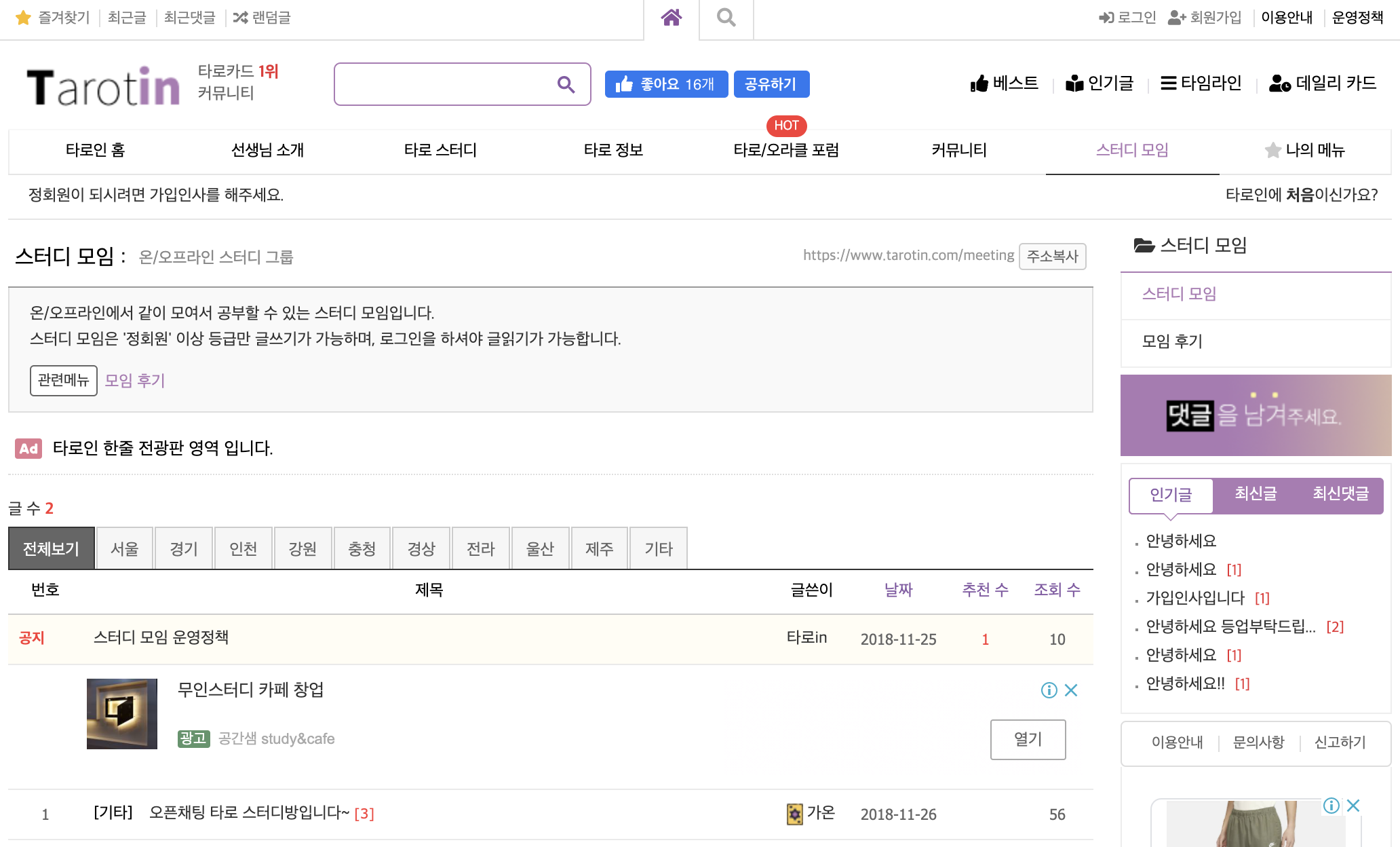 타로카드 1위 커뮤니티 사이트 '타로인' 입니다.