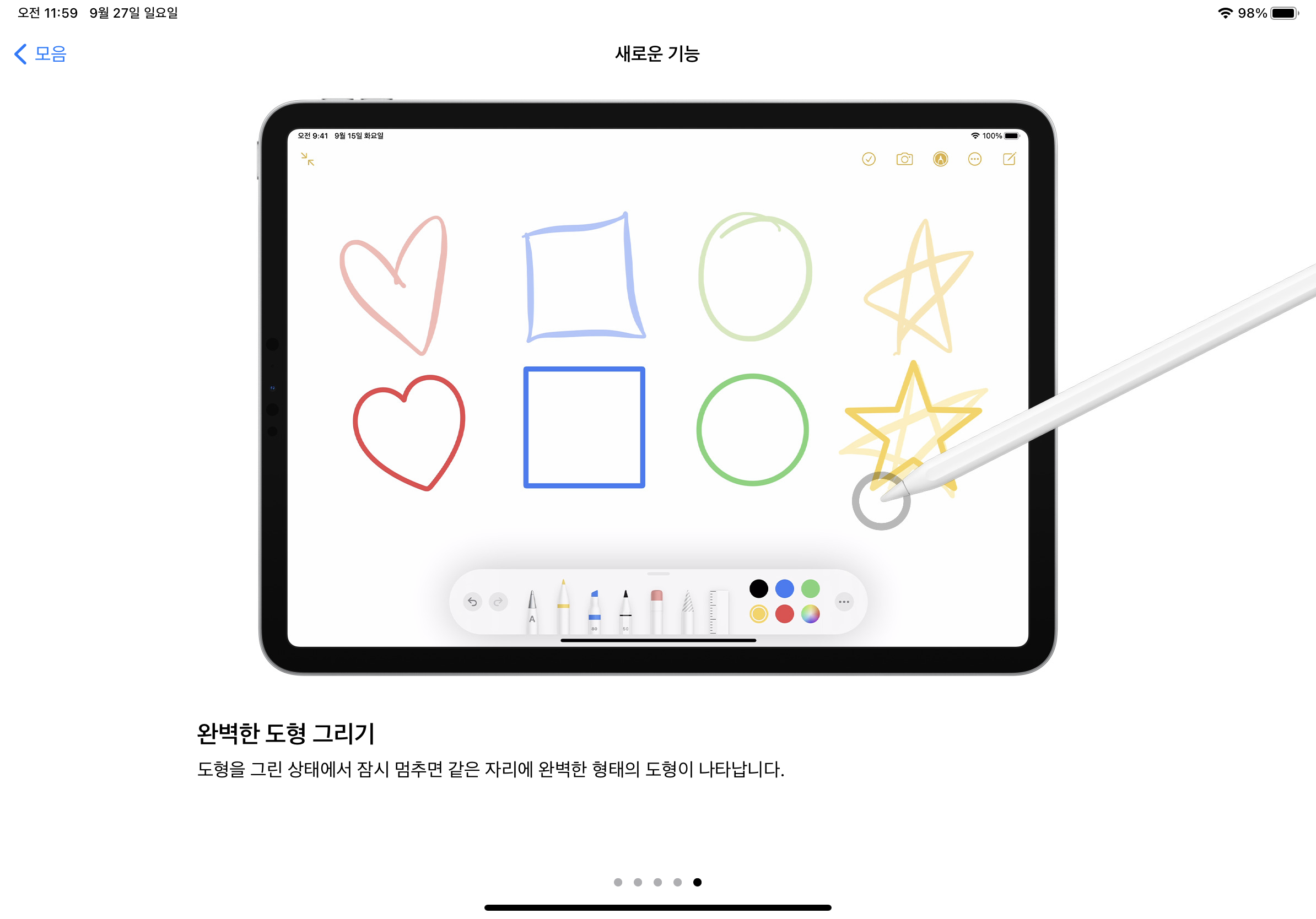 방법은 원하는 도형을 그린 후 팬슬을 떼지 않고 그대로 1초 정도 누르고 있으면 자동으로 원하는 도형을 그려줍니다.
