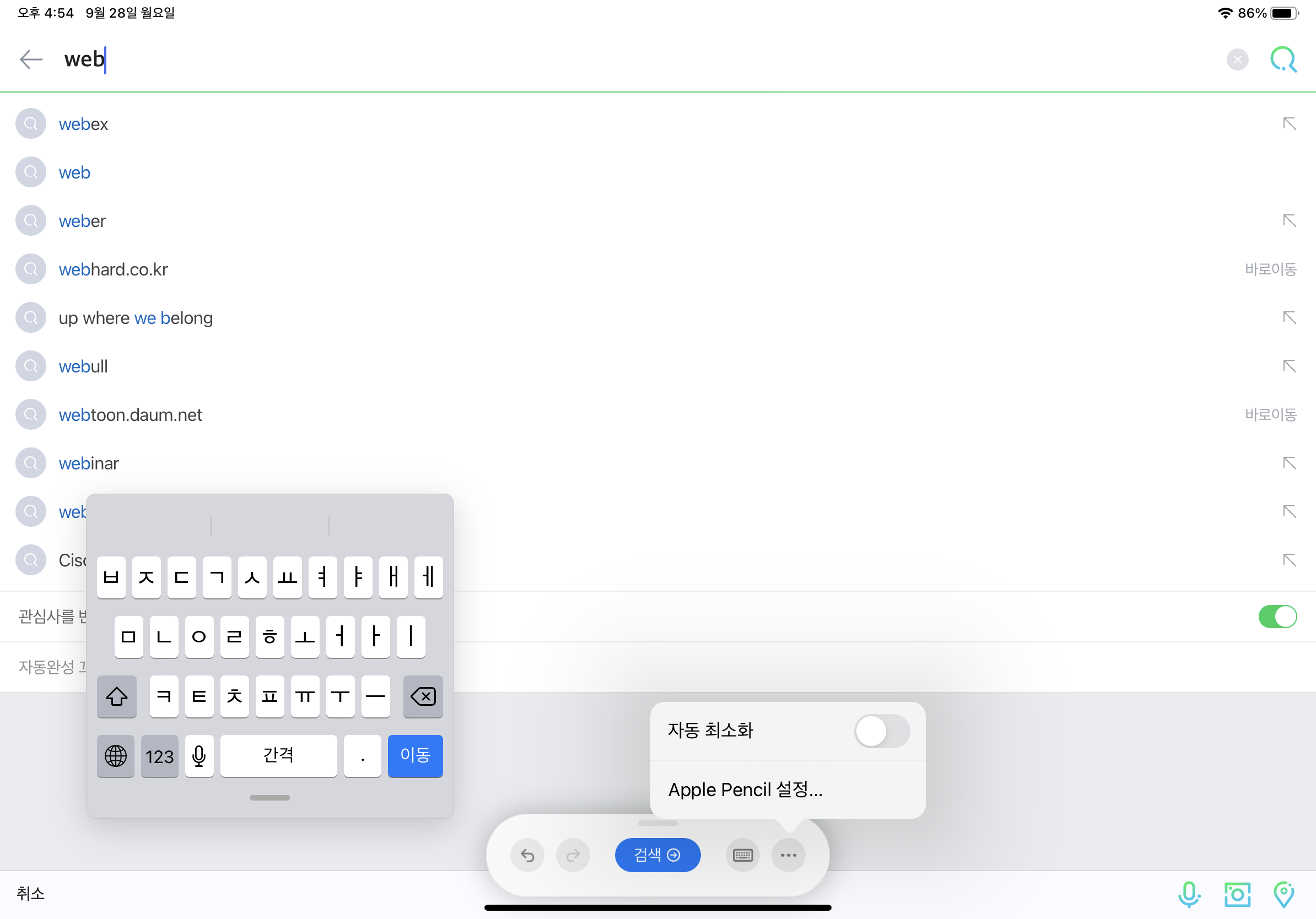 그리고 웹서핑이나 검색 input 영역에 애플 펜슬로 글을 써도 자동으로 텍스트로 바꿔줍니다.