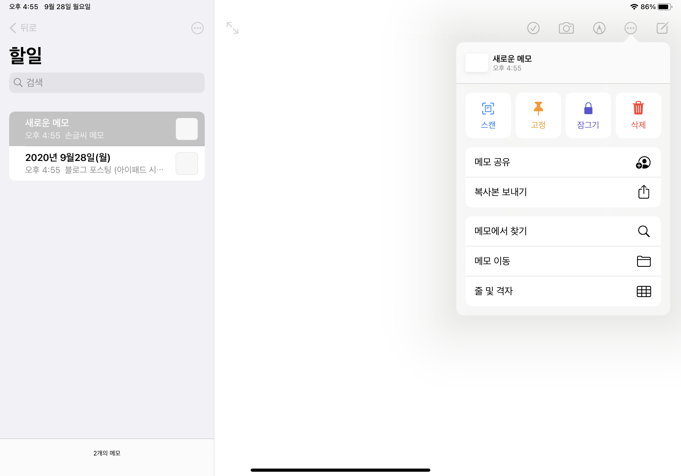 메모장에서는 애플 펜슬로 생각날 때마다 기록을 해두는데요.