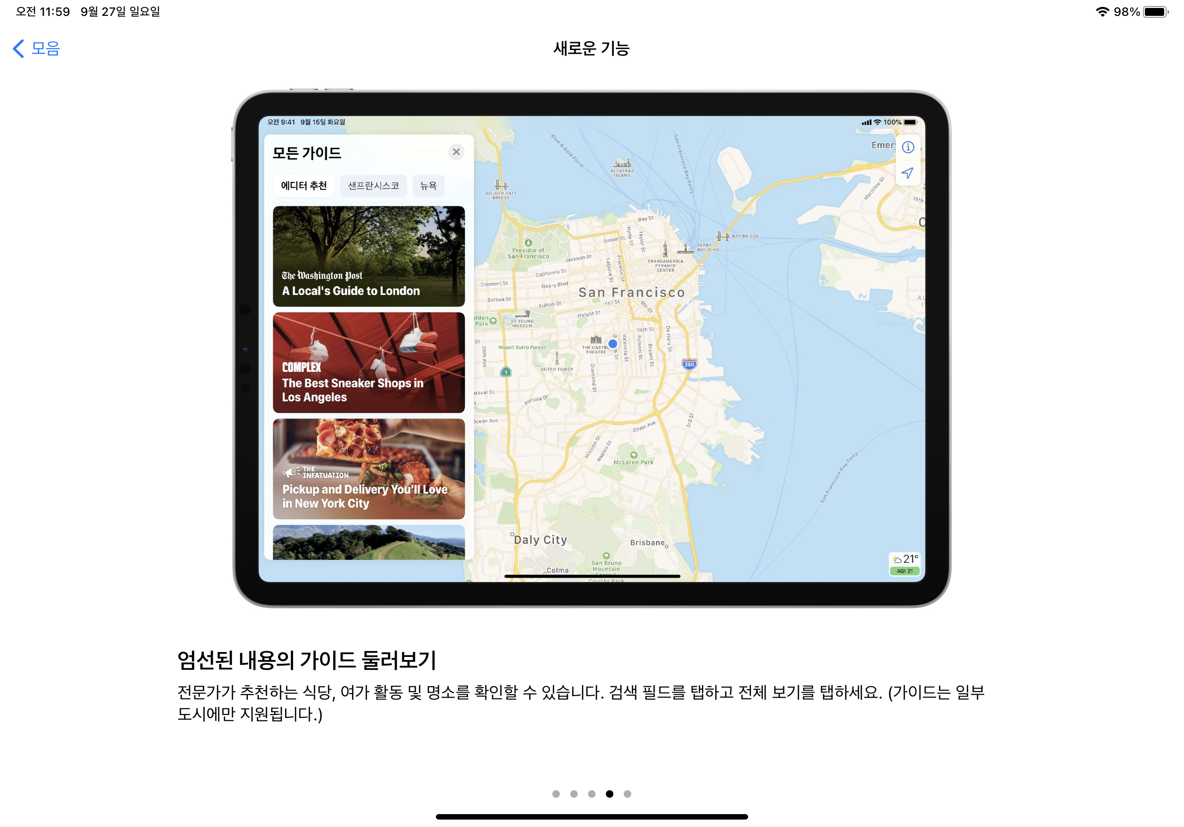 전문가가 추천하는 식당, 여가 활동 및 명소를 확인할 수 있다고 하는데, 가이드는 일부 도시에만 지원이 되기 때문에 테스트 결과 아래처럼 나오는 걸 알 수 있었습니다.