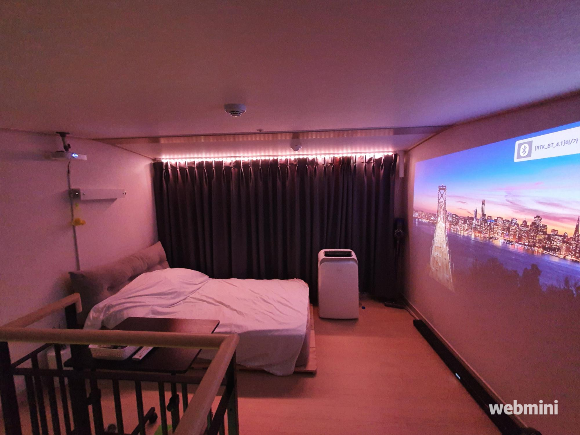 휴식 공간은 아주 편안해야 한다고 생각이 되서 빔프로젝트와 hue 필립스 조명으로 말로 제어가 가능하게 구축했습니다.