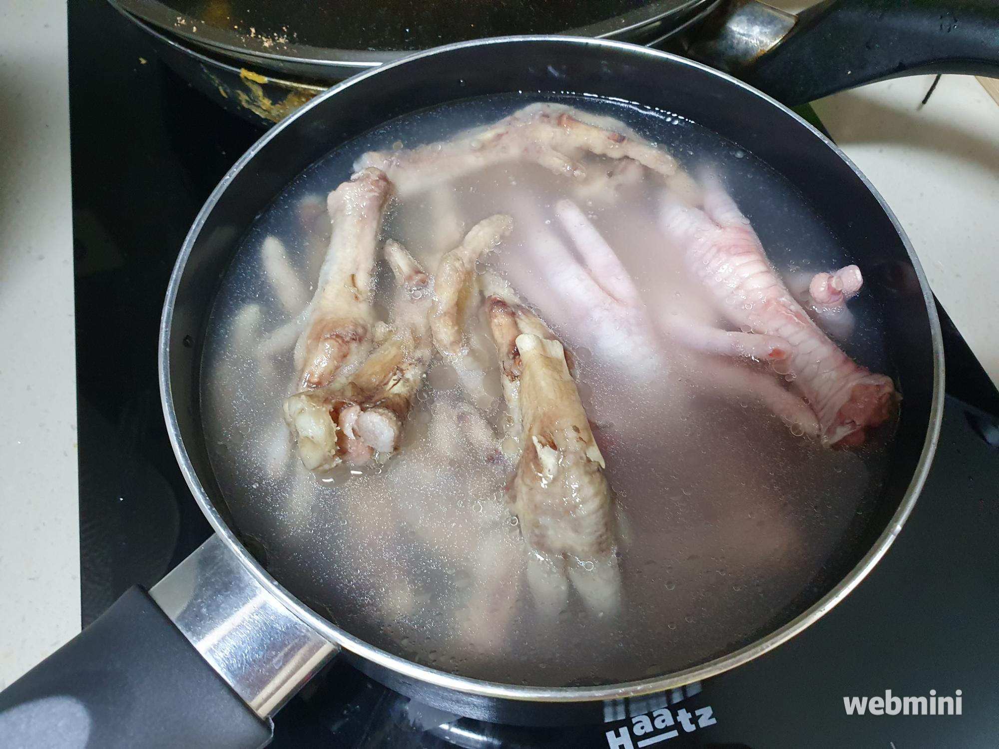 닭발이 부족한거 같아서 기존에 삼계탕할때 같이 끓인 닭발과 생닭발을 같이 삶았습니다.