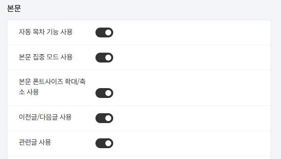 스킨 자체에서 해당 기능은 제공하기때문에 스킨 설정에서 사용이 가능합니다.