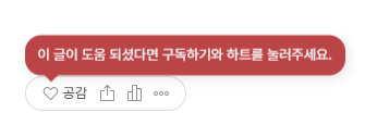 해당 플러그인 사용시 '공감' 설명 애니메이션 위치가 맞지 않기 때문에 해당 플러그인은 해제해주세요.